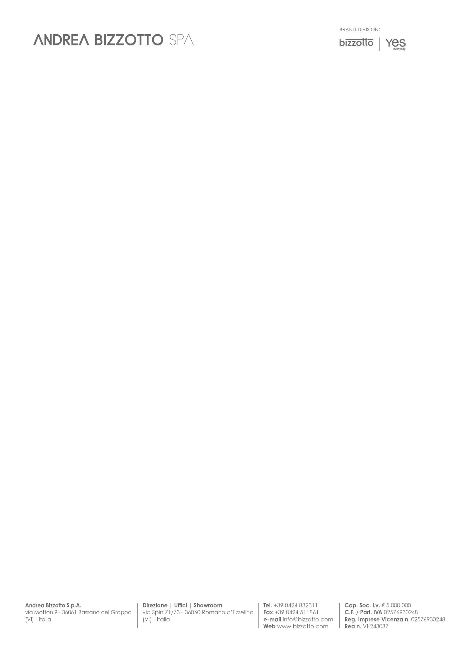Da sempre orientata alla scoperta di nuove frontiere del design, Bizzotto valorizza materiali, lavorazioni e suggestioni provenienti da culture diverse, trasformandole in collezioni capaci di dialogare con ambienti interni ed esterni in modo autentico e riconoscibile.