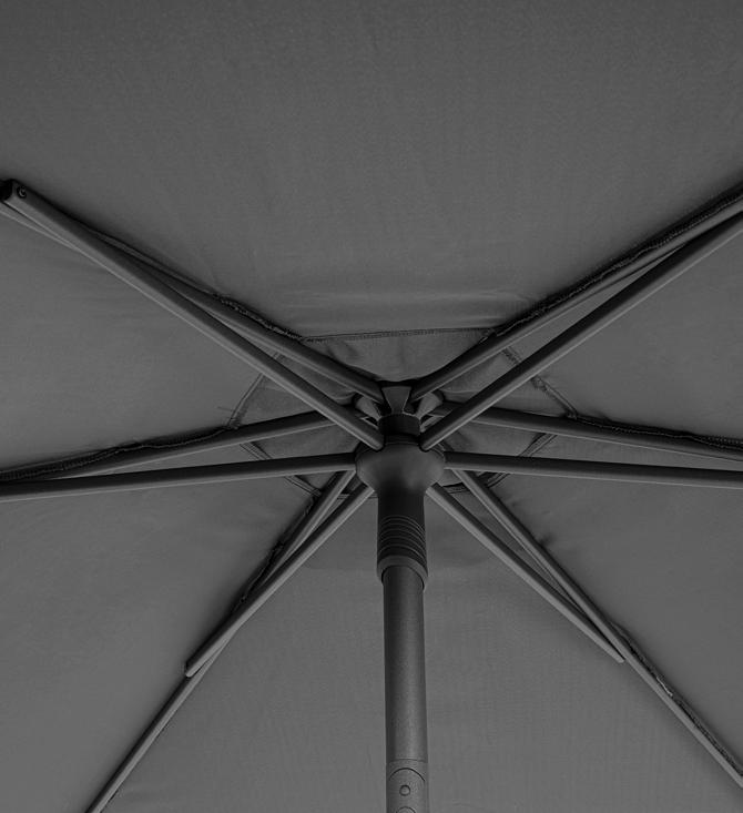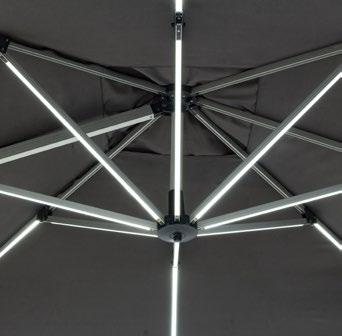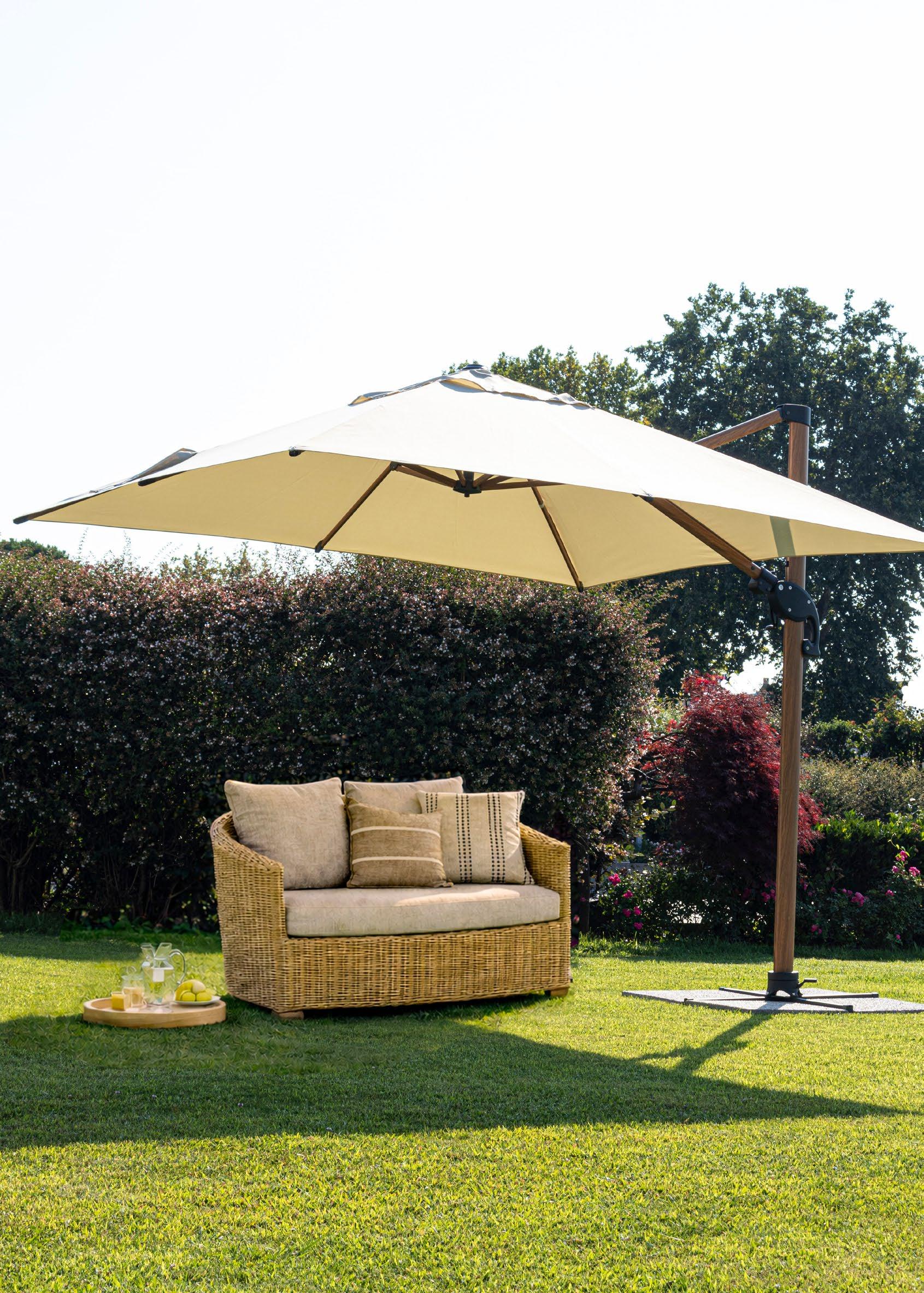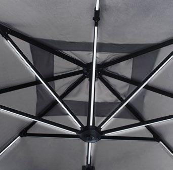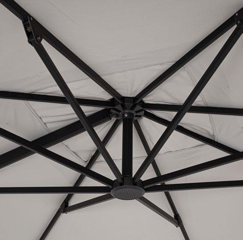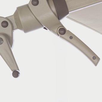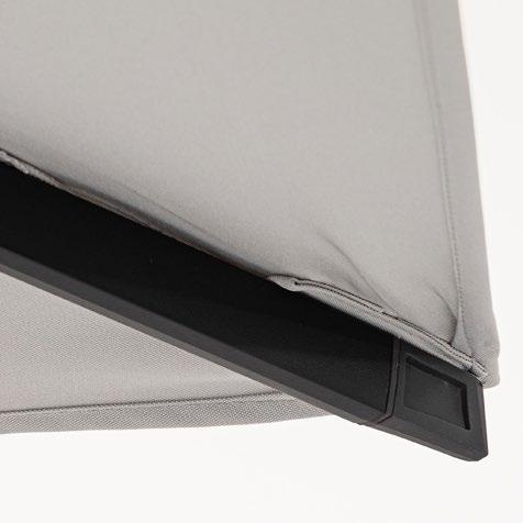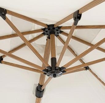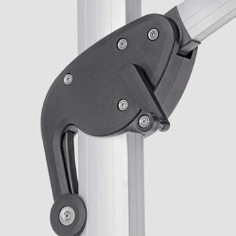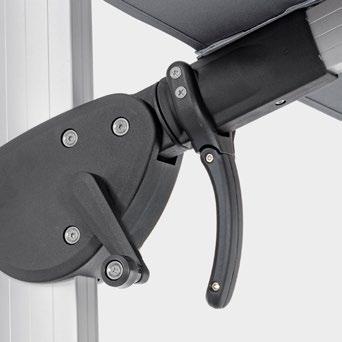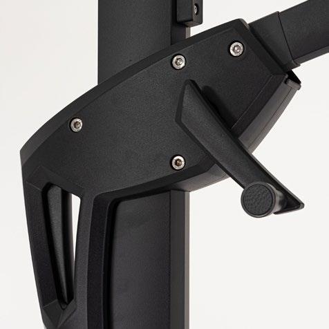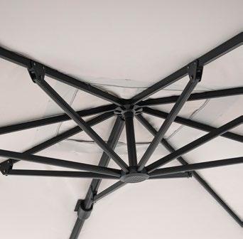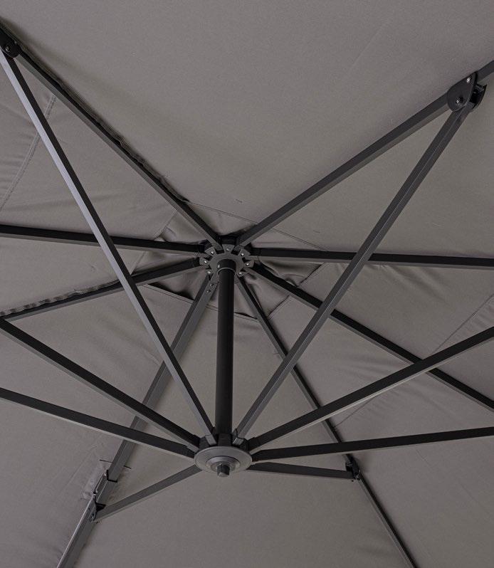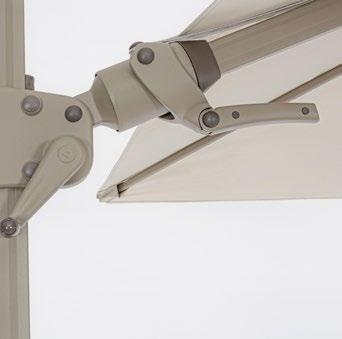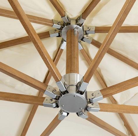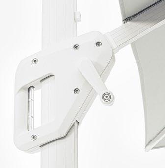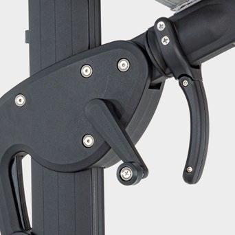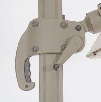 Struttura in alluminio verniciato a polvere (poliestere). Pali portanti 111x111mm, traversi 140x75mm. Tetto lamellare orientabile tramite manovella. Cod. 0795783 e 0795784 con due manovelle, ogni manovella consente il movimento indipendente del singolo settore. Lame frangisole a doppio strato 173x30mm. Sistema di deflusso dell’acqua integrato all’interno dei pali portanti. Viteria in acciaio inossidabile. Da assemblare.