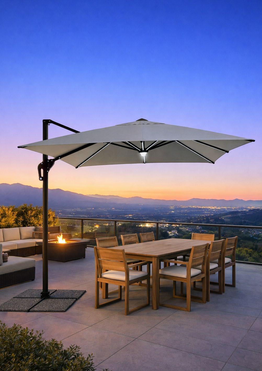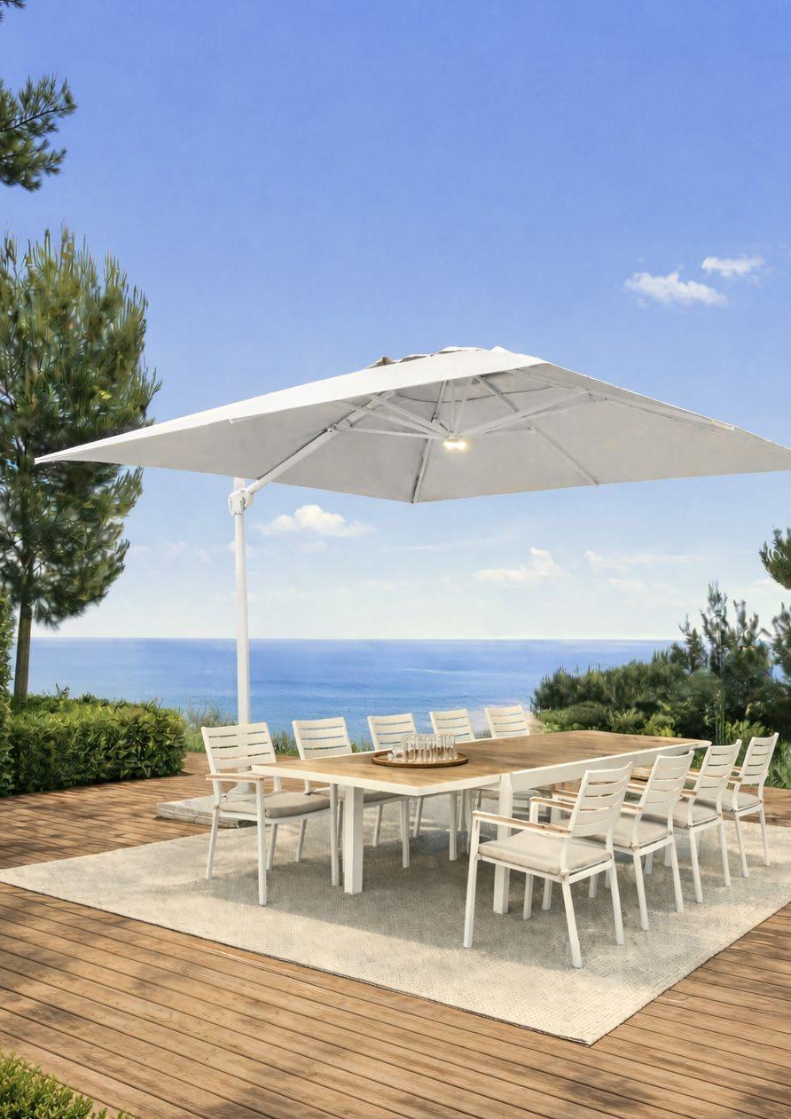 Pergola ocean, alluminio verniciato a polvere (poliestere). Pali portanti 111x111mm, traversi 140x75mm. Tetto lamellare orientabile tramite manovella. Cod. 0795811 E 0795812 con due manovelle, ogni manovella consente il movimento indipendente del singolo settore. Lame frangisole a doppio strato 173x30mm. Sistema di deflusso dell’acqua integrato all’interno dei pali portanti. Viteria in acciaio inossidabile. Da assemblare.