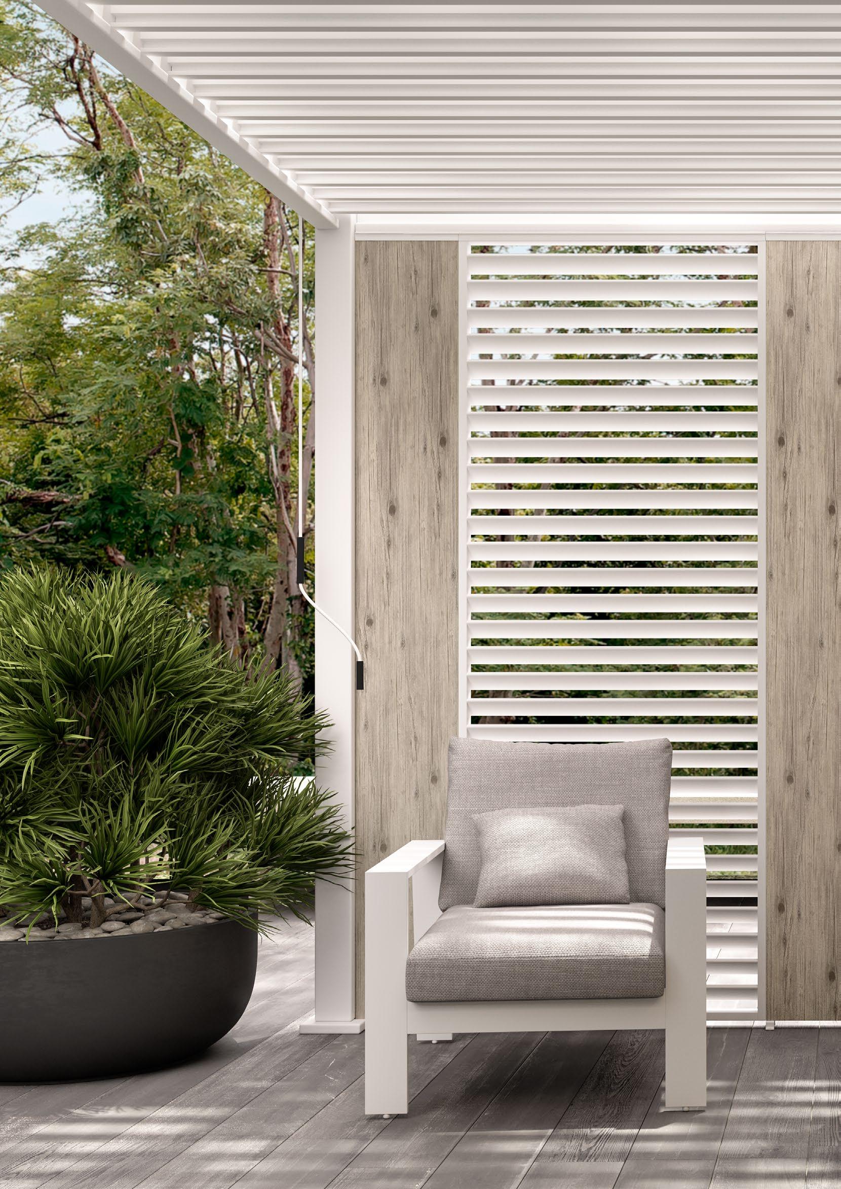 La linea Ocean è concepita per rispondere in maniera semplice e funzionale, al desiderio di vivere spazi open air con la massima libertà, unendo due benifici: protezione e possibilità di apertura.