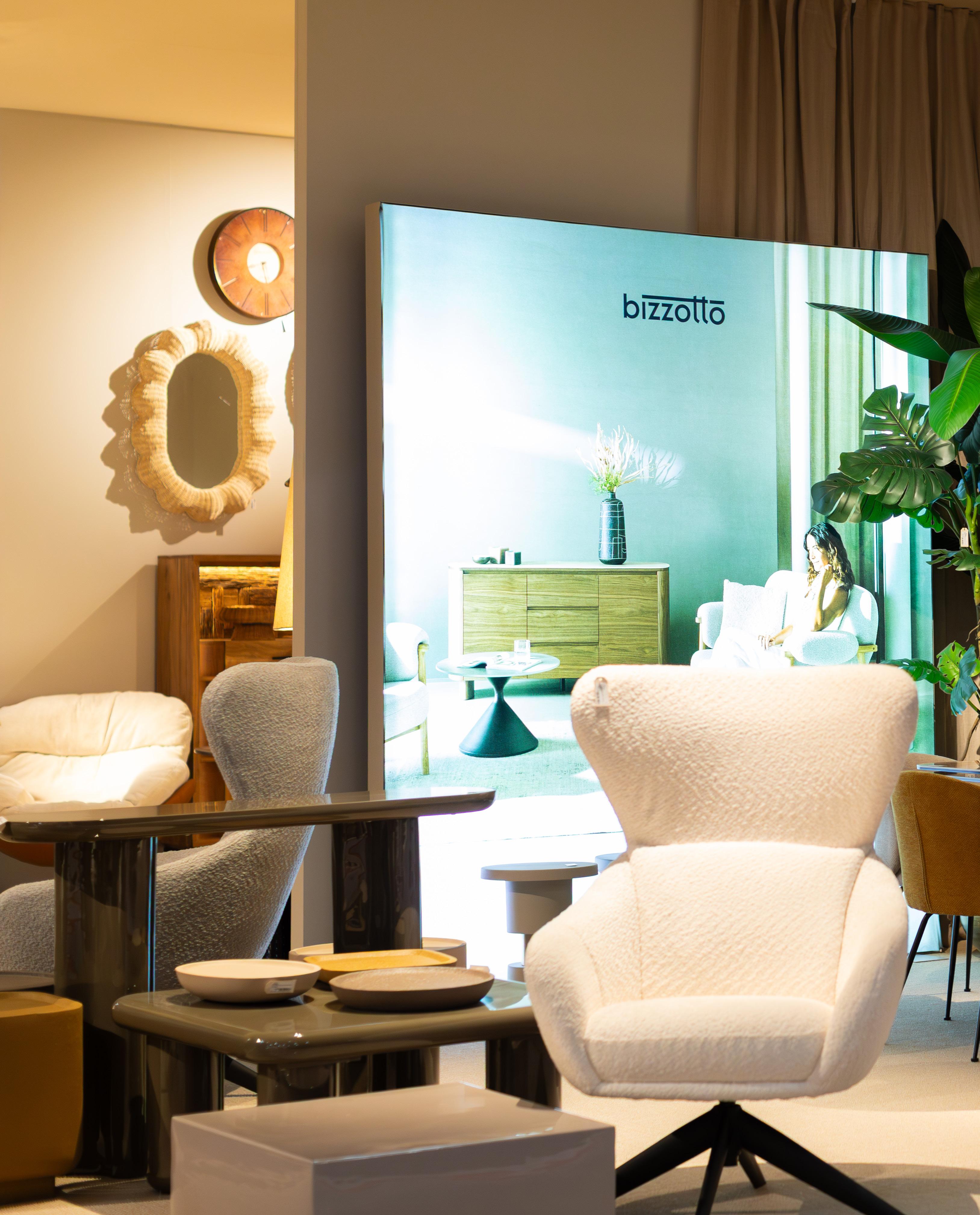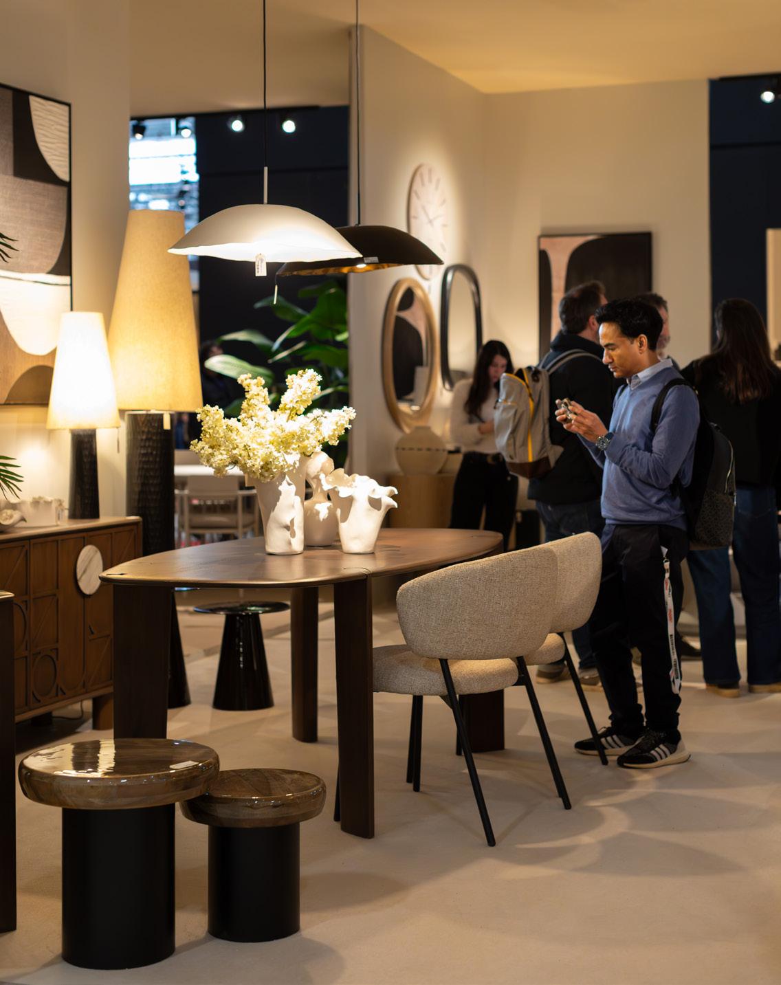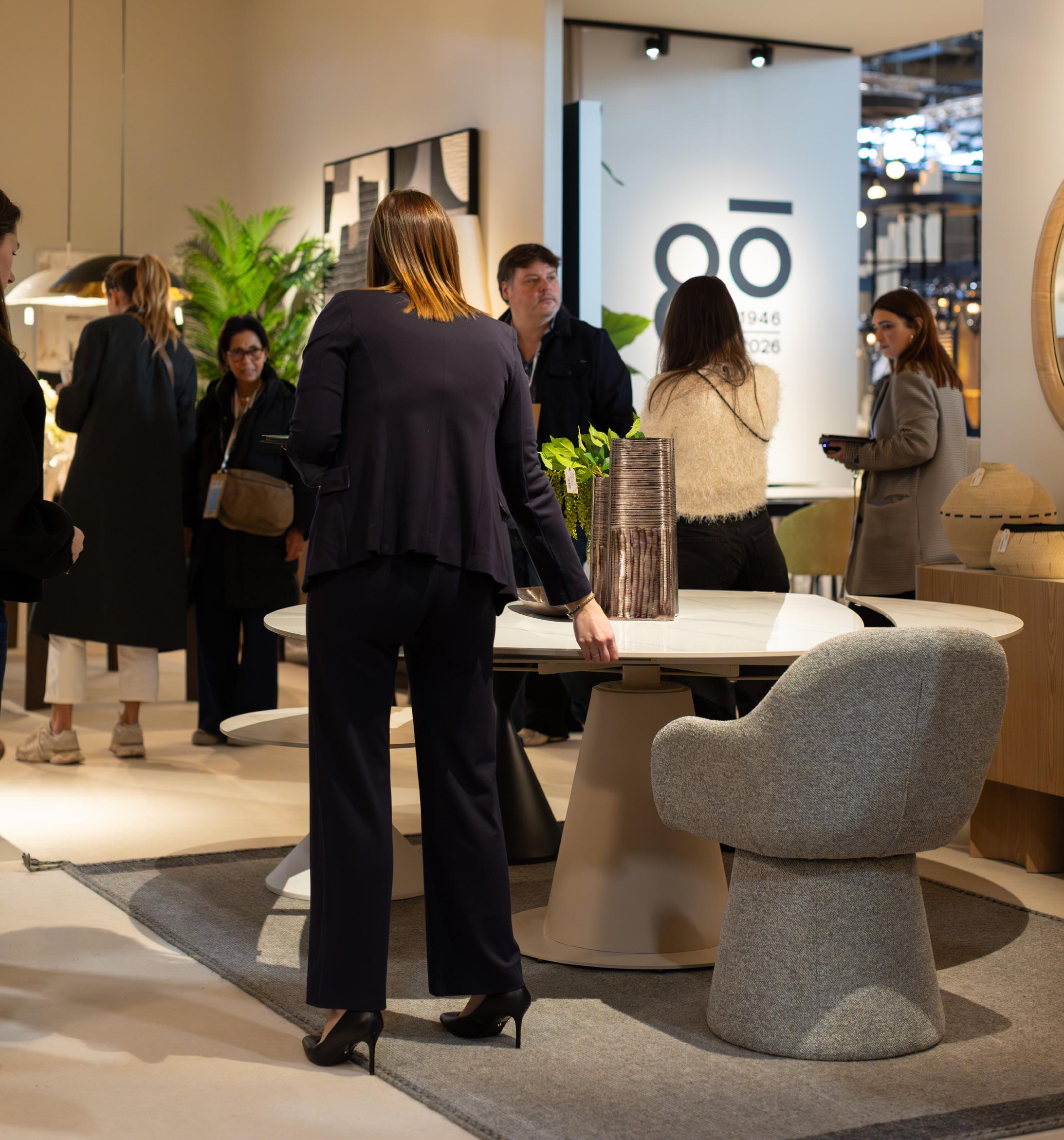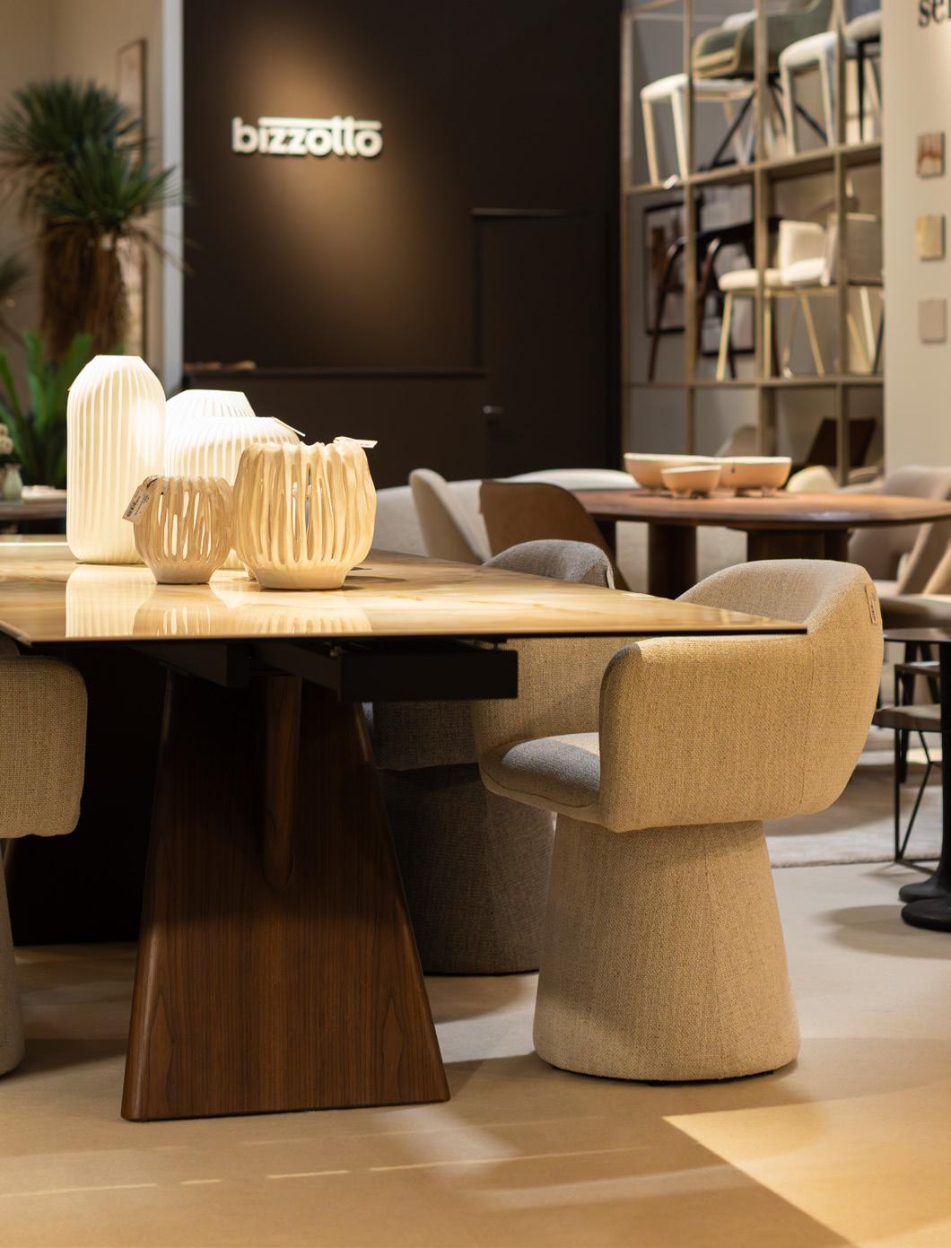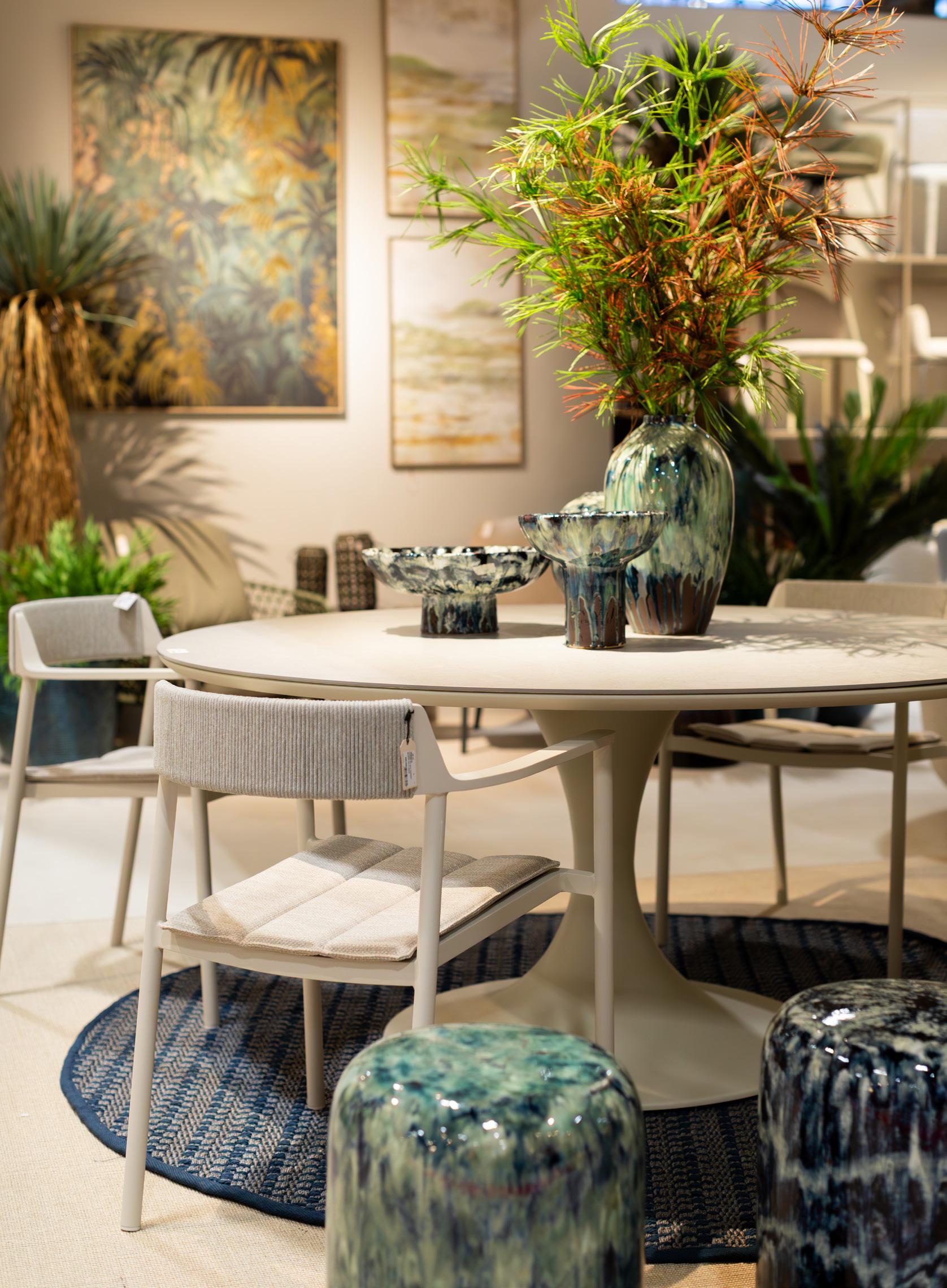 Maikki, Extendable table 0731301; Antara, Beige swivel armchair 0734543; Mangal, High sideboard 0747418