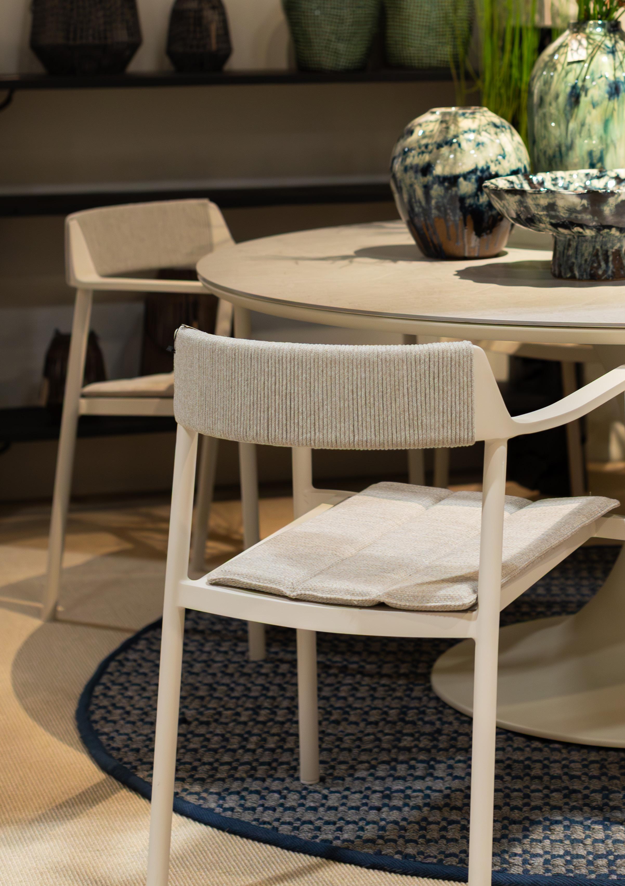 Arnold, Table D120 pelican 0663666; Ropery, Morny chair w-armrest w-cushion 0663815