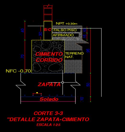 La Cimentación considerada está conformada básicamente por Zapatas Aisladas con Vigas Rígidas de Conexión de manera que proporcionarle una rigidez adecuada a la cimentación, y de Cimientos Corridos en Muros de Tabiques.