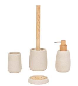 CC70121 - Ceramic and bamboo soap dispenser w/sponge and scrubber 16.5x8x19 cm