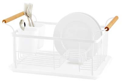 CC70032 - White metal and wood dishdrainer 39.5x26x18 cm