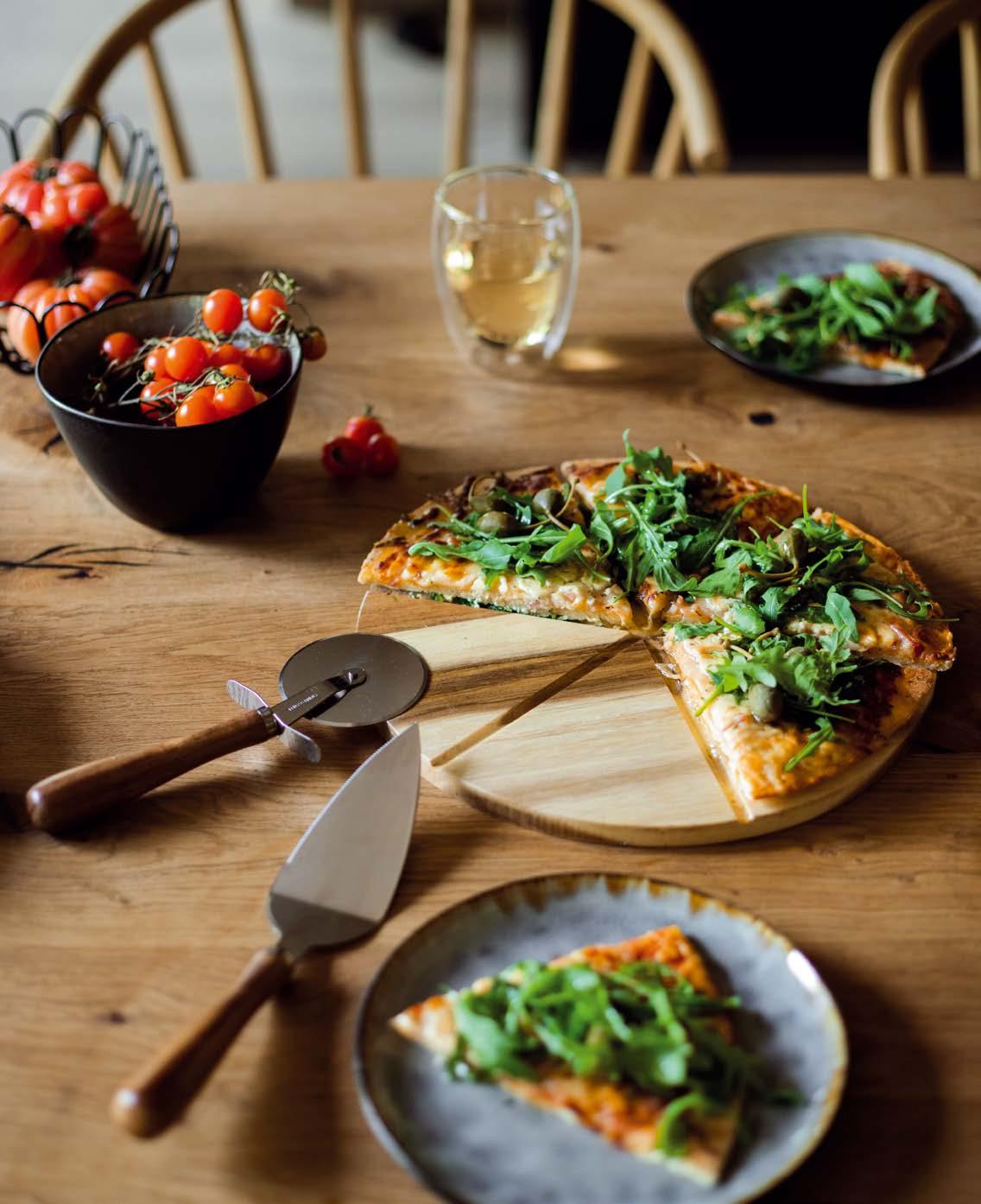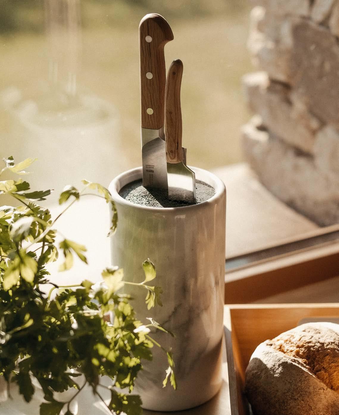 With quality materials such as marble in elemental and solid shapes, and kitchen textiles made of organic fibers with great care and attention.