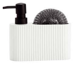 CC70058 - White polyresin soap dispenser w/scrubber 14.5x7x18.5 cm