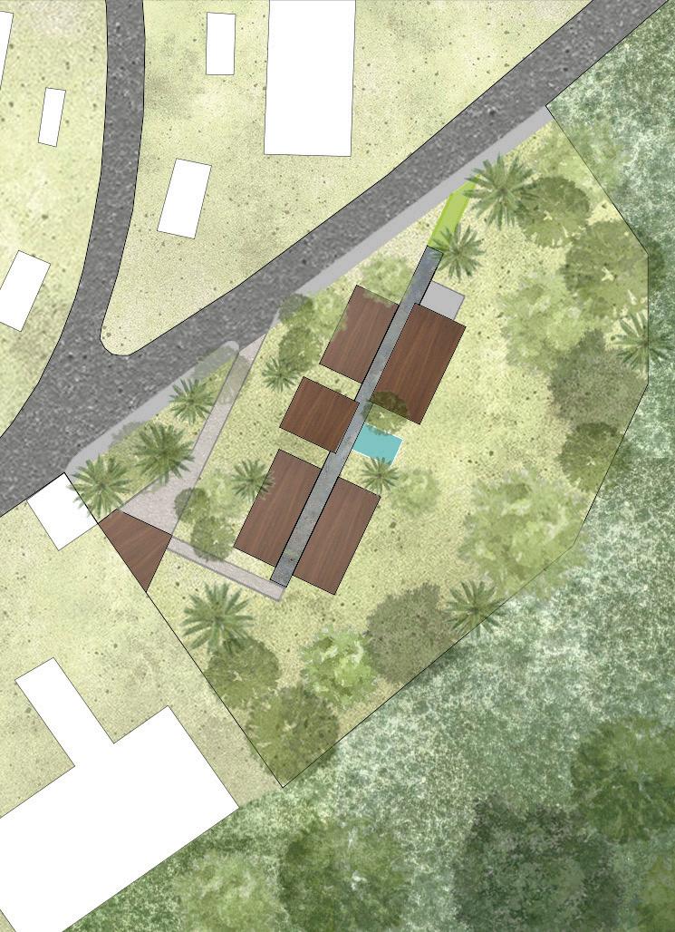 Esta Estación de Policia ubicada en Clayton, Ciudad de Panamá, busca dar respuesta a las necesidades de la comunidad por medio de una arquitectura conciente que utilice al clima como aliado para proporcionar espacios cómodos y funcionales sin perjudicar a su entorno natural. La conceptualización de los edificios nace a partir de los ejes existentes del contexto y está ordenado de acuerdo a las determinantes físicas y diagnósticos bioclimáticos del sitio. El proceso de diseño se basó en el debido análisis de estrategias bioclimáticas que pudieran cumplir con el objetivo de crear un edificio cero ener gía. Como lenguaje compositivo se optó por el uso de paneles perforados de acero corten para generar juegos de sombras y proporcionar confort térmico en los espacios más expuestos al sol. El proyecto cuenta con áreas de oficinas, celdas preventivas, plaza de armas, cuartos de armería, cuartos de almacenamientos, techos verdes habitables, zona social y dormitorios para los policías.