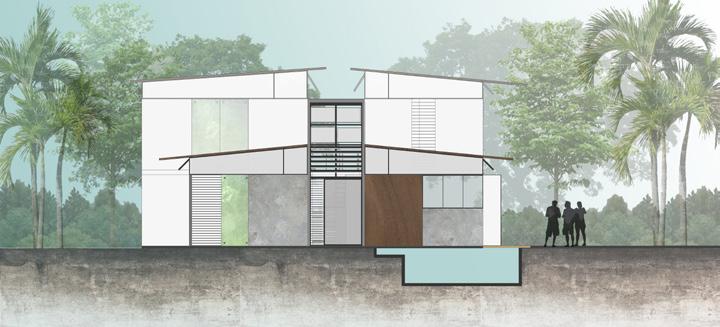 Este proyecto trata de un complejo de usos mixtos ubicado en Ciudad del Saber en la Ciudad de Panamá que se enfoca en comprender las actividades que se realizan en el área para generar una respuesta a través de distintos espacios en un solo lugar. La fachada con balcones curveados, igual que las cubiertas, tienen la intención de seguir un lenguaje orgánico que va de la mano con la esencia del sitio. Esto permite proporcionar una composición rítmica que se muestra dinámica con la luz y sombras del paso de las horas. Está compuesto principalmente por cinco usos que son vivienda, comercios, co-working, área verde y hotel. Además, cuenta con un nivel subterráneo para estacionamientos. Ambos bloques contienen espacios de terrazas privadas, salones comunes y equipamiento urbano para la integración del espacio público.