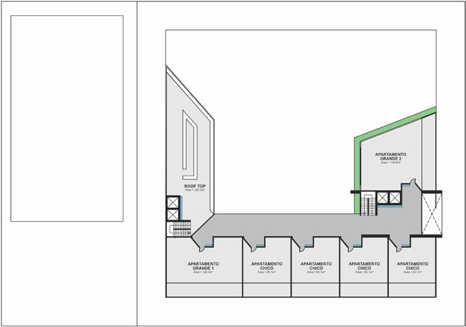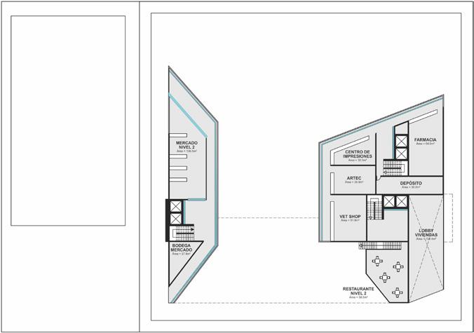 Está compuesto por dos niveles para áreas de comercios, tres para área de vivienda y un nivel subterráneo para estacionamientos. Comprende diecinueve apartamentos, doce locales, dos terrazas privadas y equipamiento urbano para la integración del espacio público.