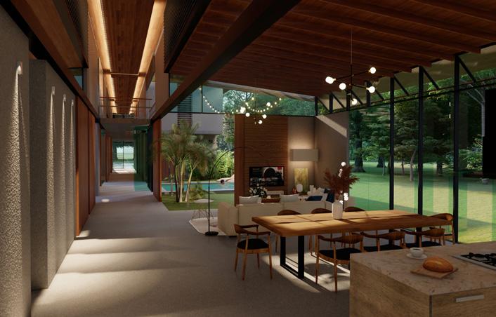 La Casa Corredor es una vivienda unifamiliar ubicada en Panamá dentro de Ciudad del Saber que busca resolver la debida circulación y funcionamiento que deben llevar las viviendas en tiempo de pande mia sin dejar a un lado la comodidad de los usuarios que la habitan. El diseño se ordena a partir de un corredor central orientado según la dirección del viento para proporcionar confort térmico en todas las áreas de la casa. Se propuso el uso de materiales expuestos como madera, vidrio teñido, concreto y muros de celosías metálicas para asegurar la permeabilidad de los espacios hacia la naturaleza existente de su entorno. La casa cuenta con área de desinfección, lavandería, cocina, sala, comedor, oficina, 3 habitaciones secundarias, 2 habitaciones de visita, 1 habitación principal, 5 baños, garaje, un observatorio y piscina.