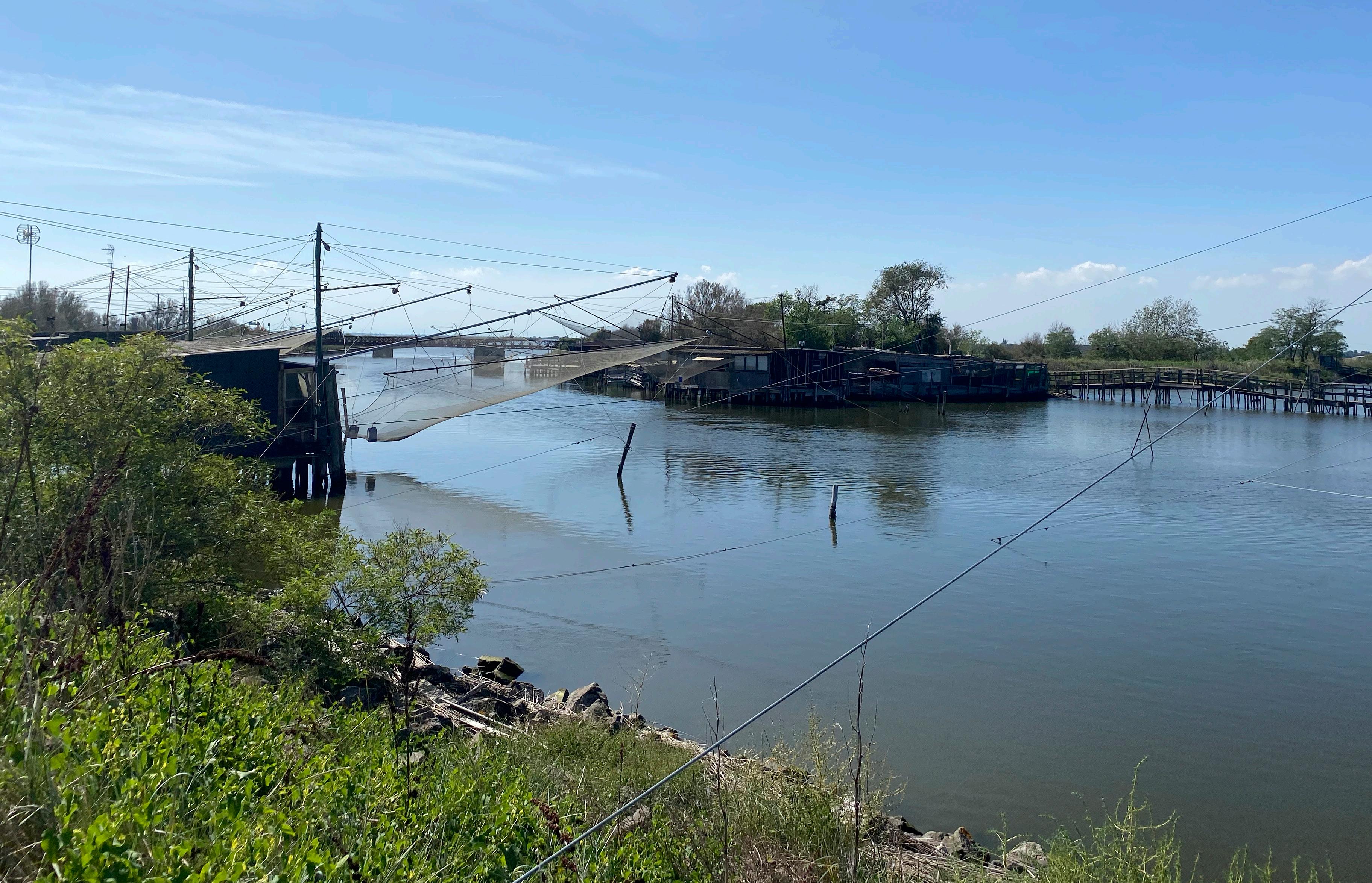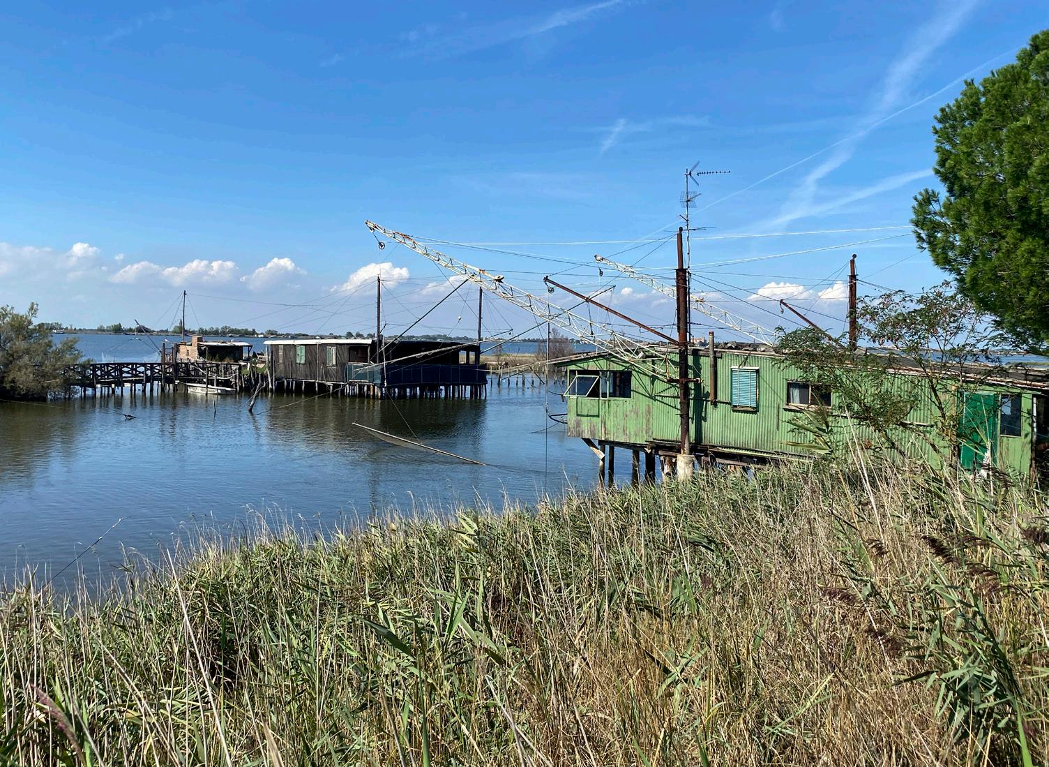 Il tempo stringe, abbiamo un giro in barca prenotato nelle Valli di Comacchio. Percorriamo la strada che costeggia i lidi, le spiagge frequentate principalmente da turisti, dove si costruisce selvaggiamente anche se gli edifici rimangono vuoti. Quando arriviamo a Comacchio abbiamo subito la sensazione di trovarci in un ecosistema unico. âComacchio Ăš come unâisola â racconta Ribes â con una identitĂ molto forte.â Possiamo sentirla ovunque ci giriamo, mentre attraversiamo in barca le valli di Comacchio con i suoi specchi dâacqua affollati di fenicotteri e tante altre specie di uccelli. La barca attracca nei pressi di un casone, la tipica abitazione fluviale un tempo rifugio dei pescatori di anguille, realizzata con canne e altri materiali naturali provenienti dal Delta del Po.