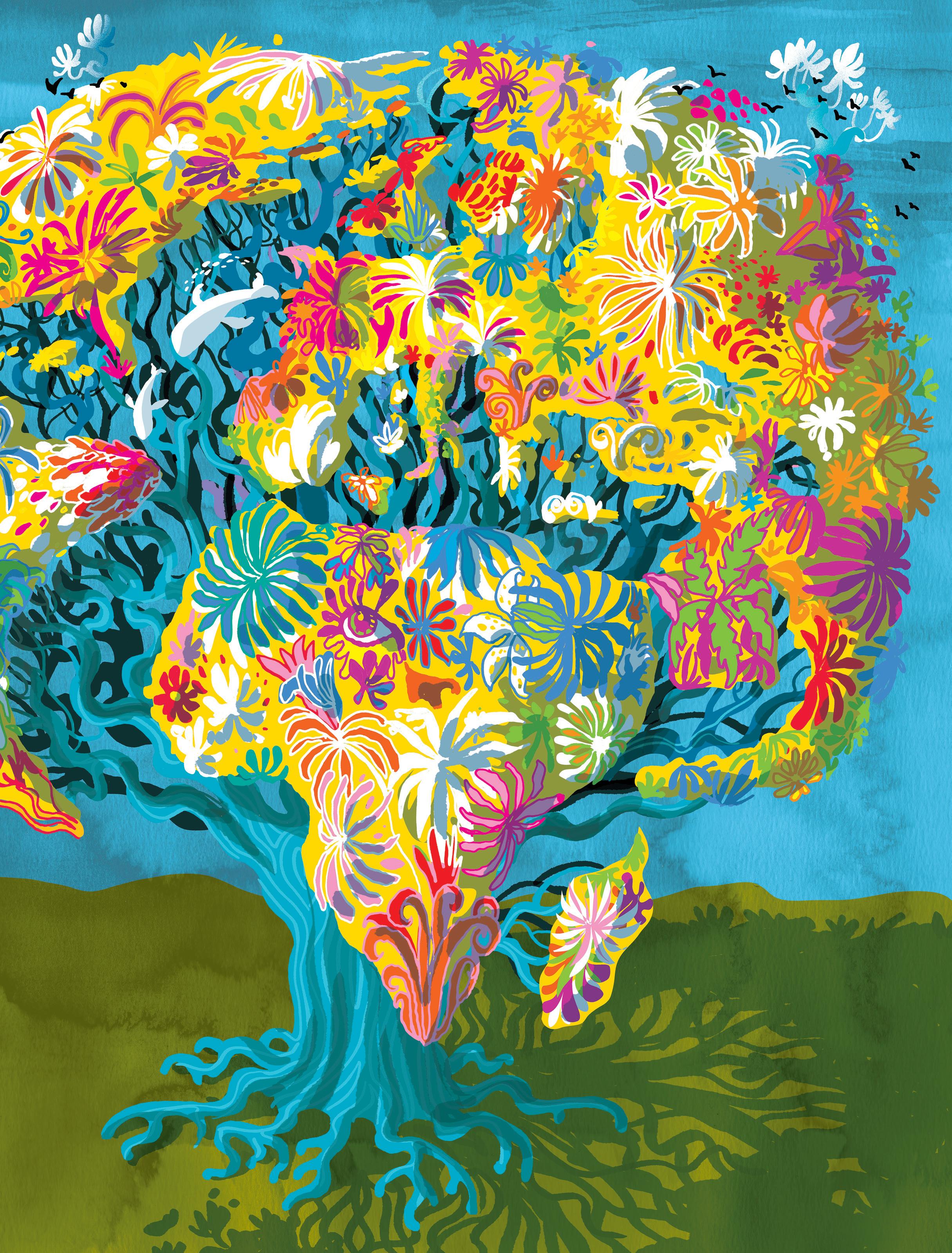 La natura come guida per il futuro con entusiasmo e gioia in tutto il mondoIllustrazione di Carlo Stanga; WanderWORLD III