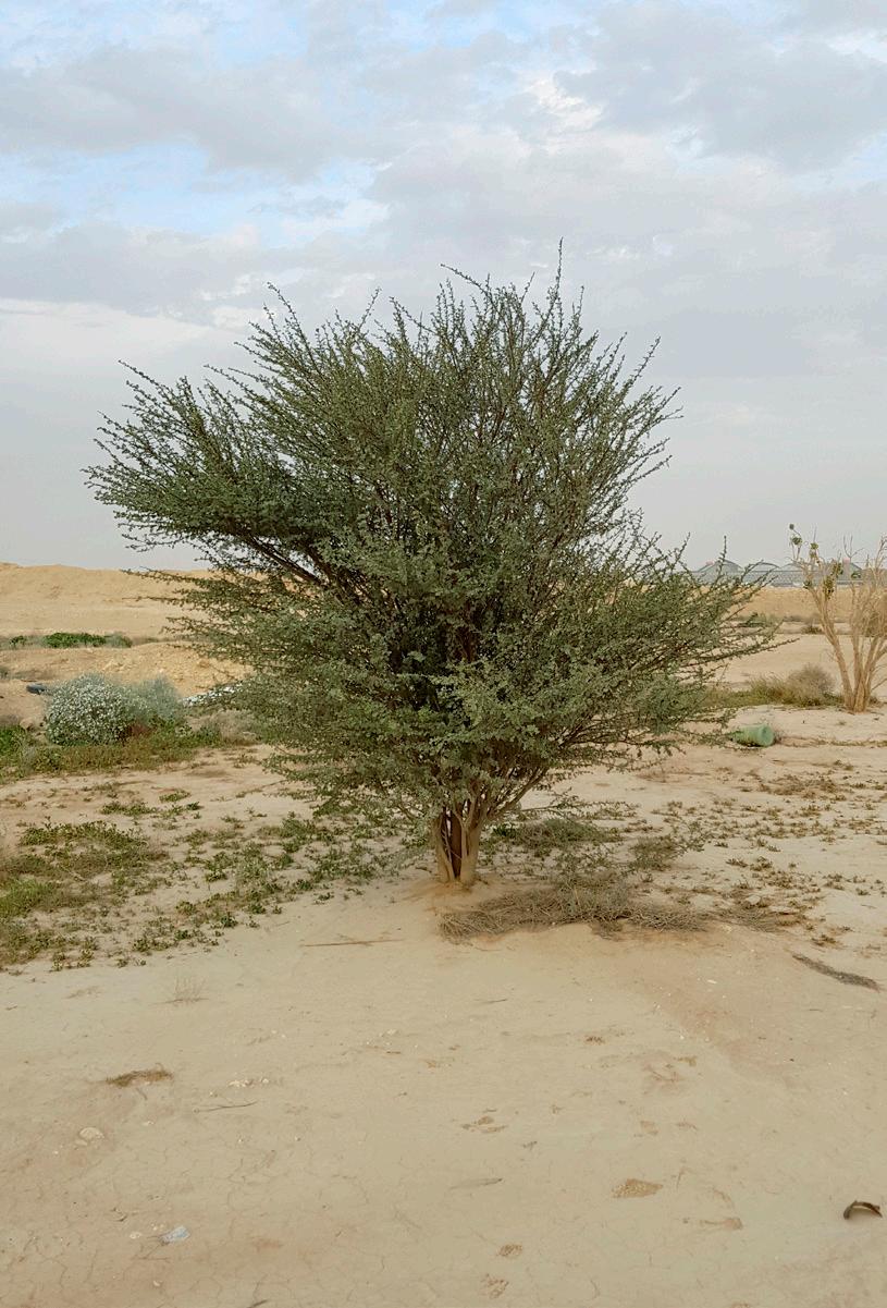 As I move closer to the desert, I can see green clusters in the distance, an ensemble of different trees and shrubs. Itâs a surprising contrast with the rest of the barren desert landscape. Seeing this native flora up close is very curious. Most of the trees have thorns to protect themselves from animals, while others are crowded with birds taking advantage of the shade that their extended canopy provides. Itâs a perfect example of a symbiotic relationship.