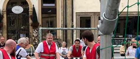 Ein tolles Match beim Menschenkicker-Turnier auf dem Bamberger Maxplatz: Das SPD-Team hat gegen das CSU/BUB-Team mit 7:4 gewonnen!