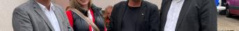 Auf dem Bild oben mit v.l. MdB Andreas Schwarz, Oliver Dotterweich, Staatssekretär Jörg Kukies, Sven Bachmann und Volker Lax von Bosch Bamberg.