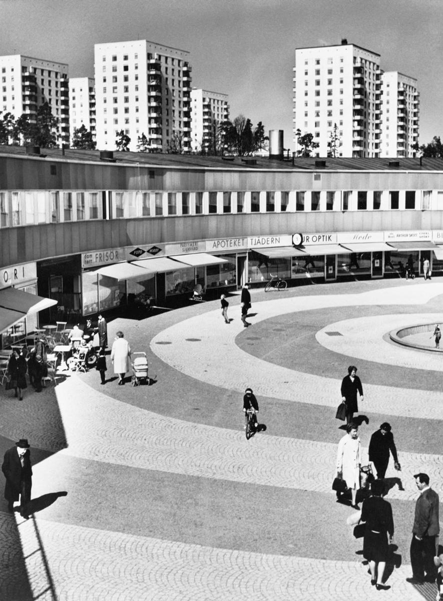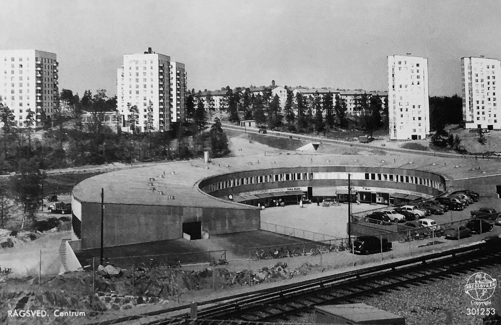 Modsat side: Rågsveds centrum ca. 1960, fotograf ukendt. (Stockholms Stadsmuseum)