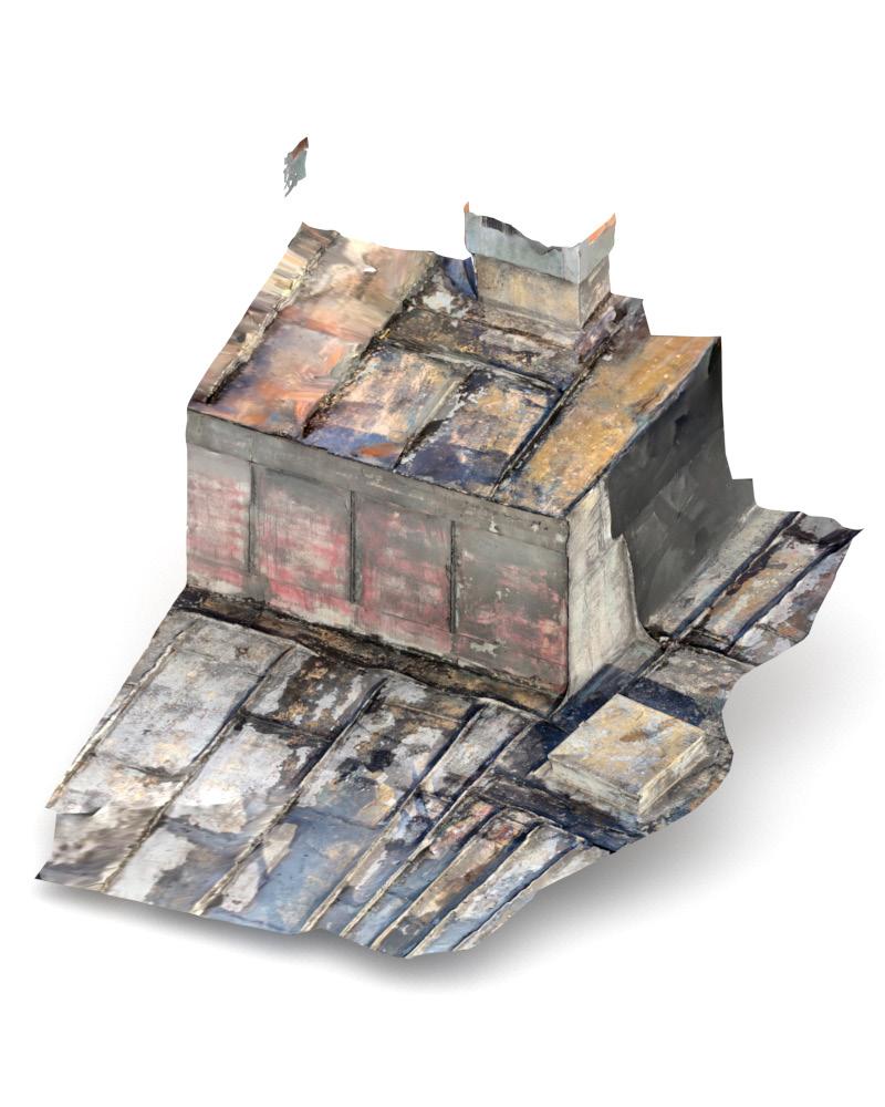 Lasteplanerne har en tagoverdækning, der er svejset direkte ind i de bærende betonsøjler med en intern vandafledning, hvilket udgør et åbenlyst fugtproblem.