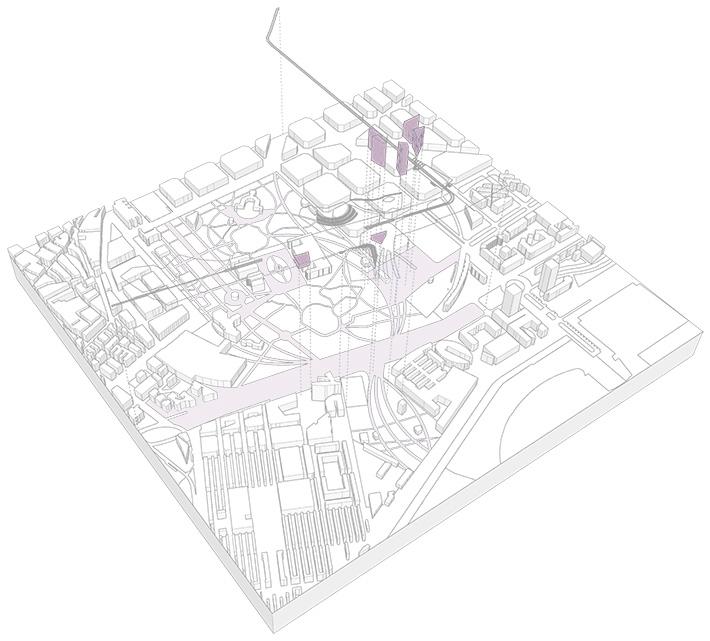 DOWN: plan of the new roof that across the pedestrian boulevard