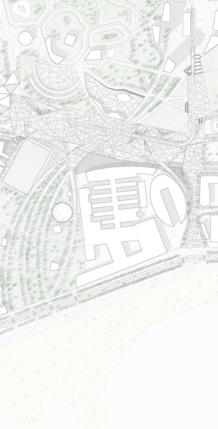 The municipality intends to remove the zoo to make room for green areas that connect the existing park and the park located in the Barceloneta area. On the other hand, in the project idea, the zoo becomes a public place open to the city which, through its lines, actually connects these two existing parks. Still, the areas of interest, having a high dimension, have been separated into areas of analysis the green space is dealt with as a settling theme, the area that will then suppress the wall and the new centralities are the other elements of development