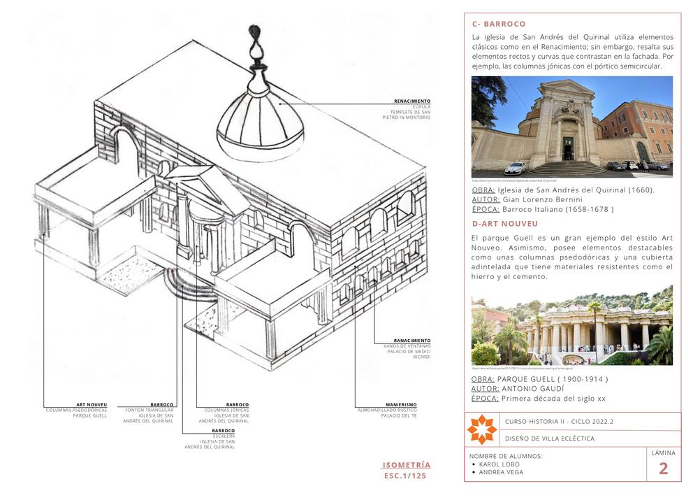 2 Debe mostrar los siguientes 4 estilos, ya sea en planta y en las elevaciones: a Renacimiento del Quattrocento b Manierismo c Barroco d Art Nouveu