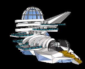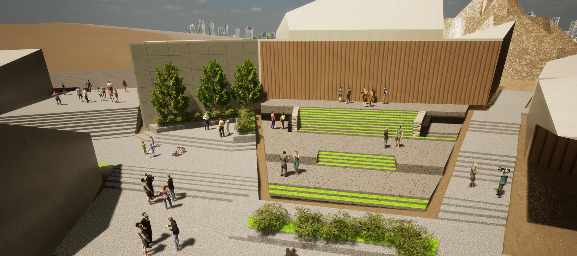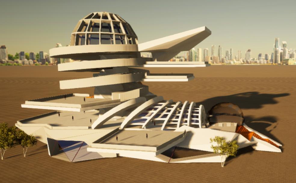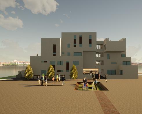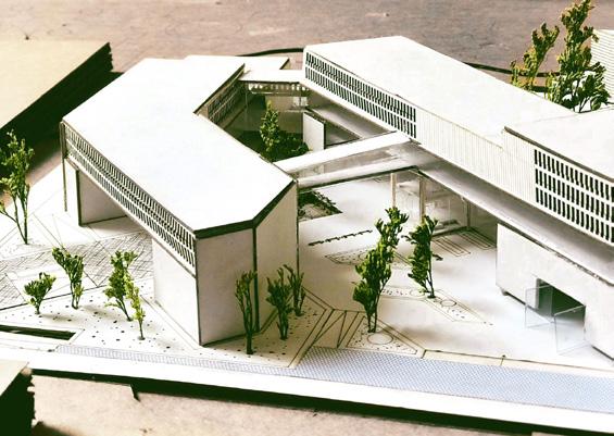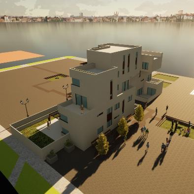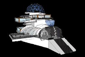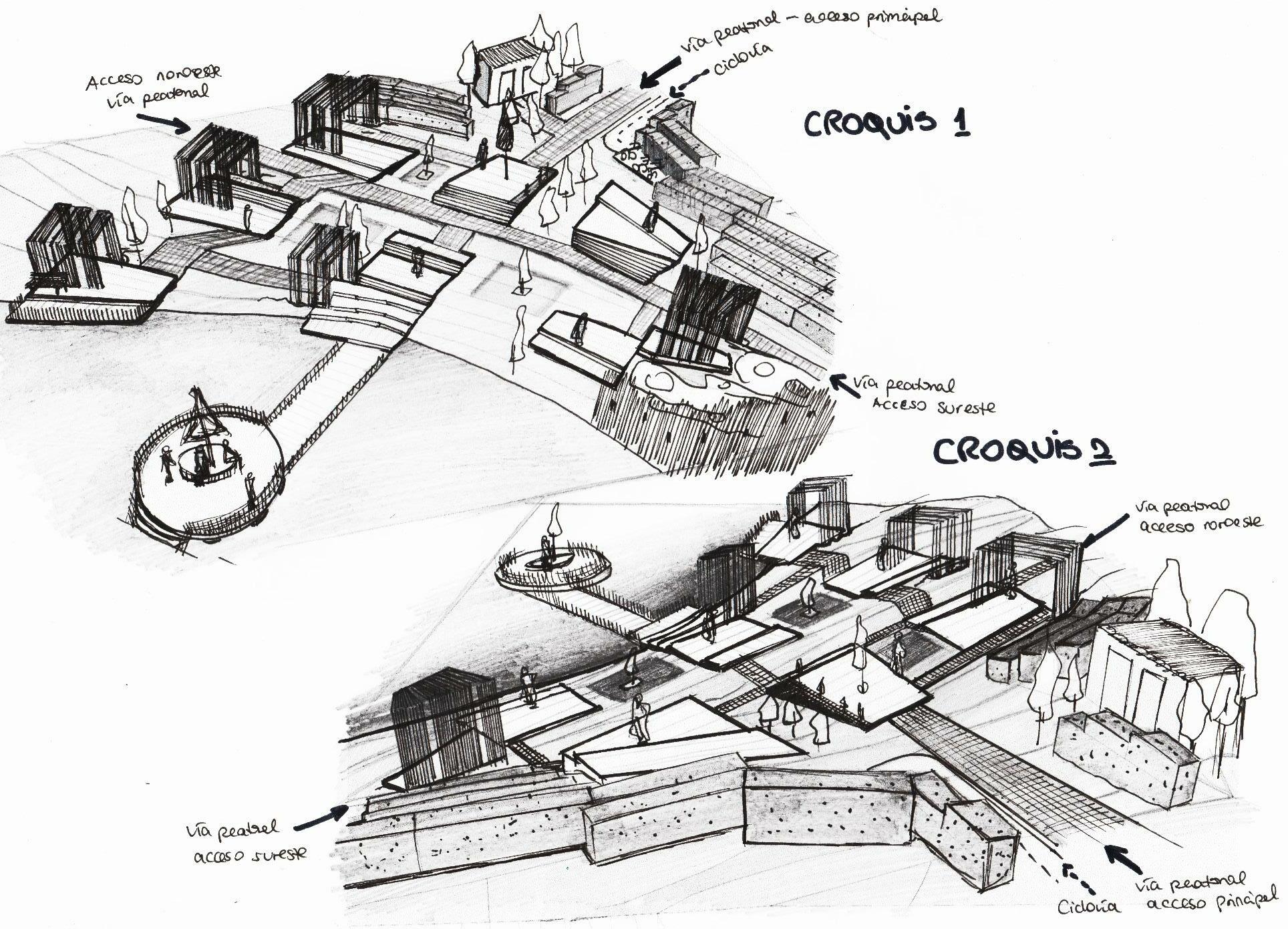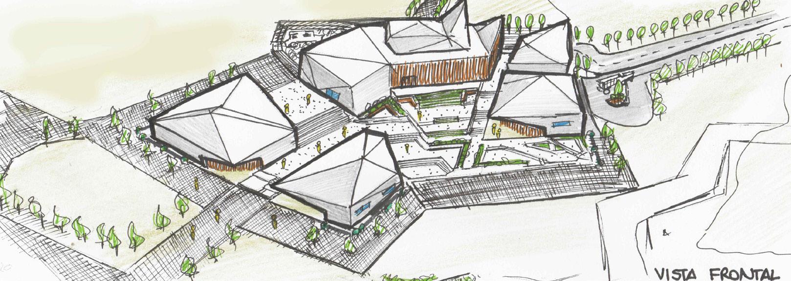 Tema escogido: Inspiración de la forma triangular de las montañas, creación de 5 módulos insertados en el terreno descendente.