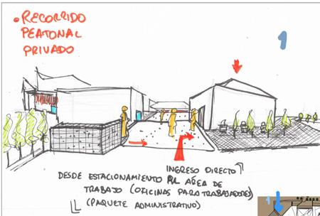 La distribución de espacios fue pensada para concebir un volumen alternado entre masa larga en el primer y tercer piso, y una masa corta en el segundo.