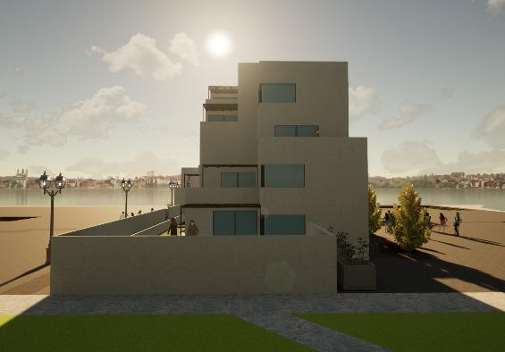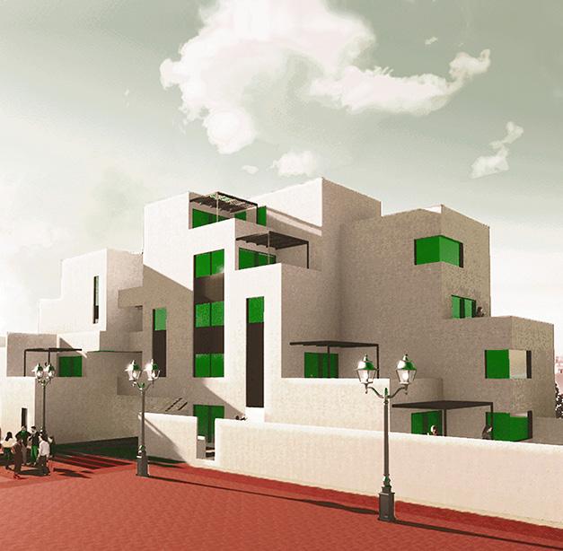 Esta identificación para el usuario tambien se refleja en las fachadas de cada volumen, siendo las más transparentes las que contienen usos comerciales (muros cortina) y las más privadas para las viviendas (celosías).