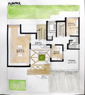 Tema escogido: espacio intermedioUso: transición entre dos ambientes, en este proyecto el objetivo es utilizarlo para entrelazar una vivienda personal con una galería de arte para un solo usuario que administra ambos espacios. Taller III