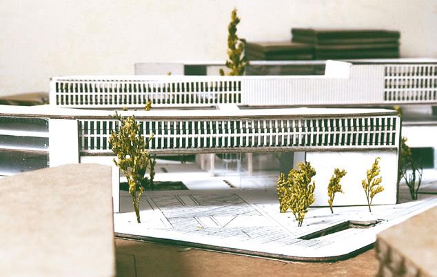 Para este proyecto se armó una torre de planchas apiladas de tecnopor hasta conformar 1 metro de altura. A partir de esto, se empieza a excavar hasta formar múltiplesespacios conectados por rampas. Escala: 1/100. Esta maqueta fue enchapada en los bordes. Se utilizaron tres tonos distintos de color marrón para separar secciones.