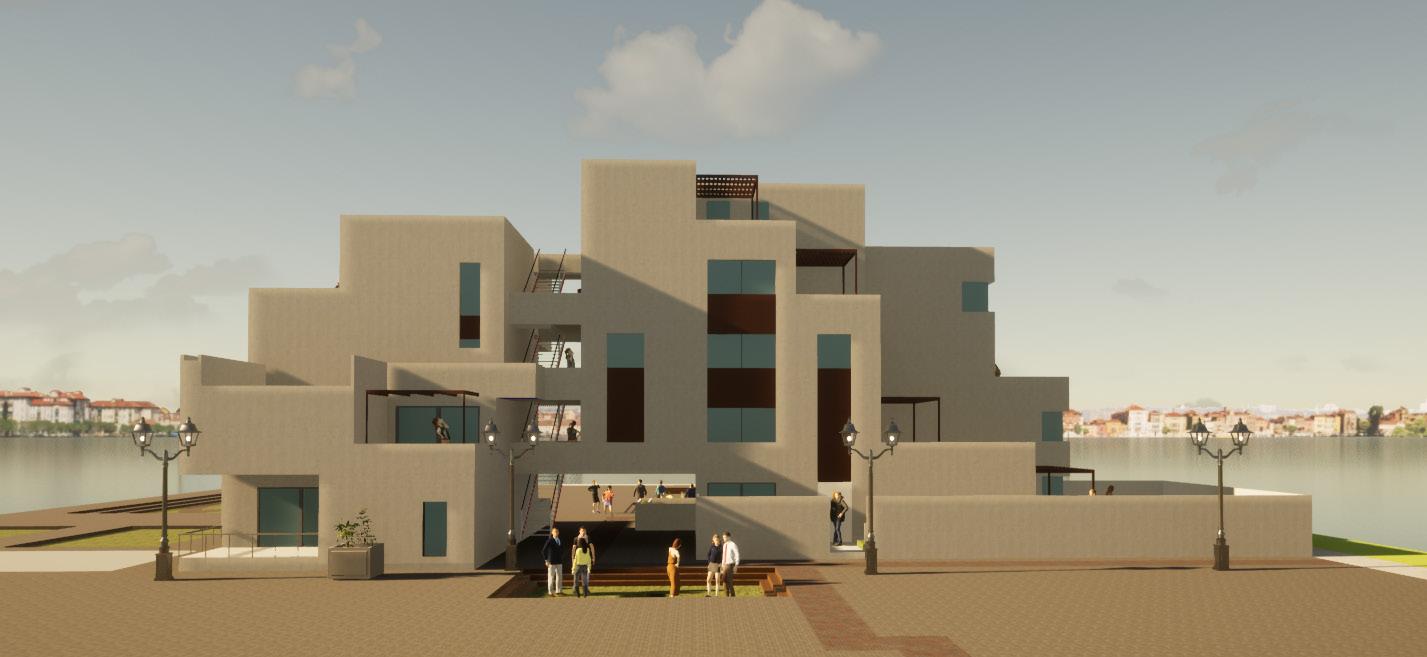 El proyecto es un edifico híbrido, y como catalizador urbano, cumple la integración de cuatro usos. Comercio, vivienda, oficina y cultura. El concepto es la suceción de volados. Y consta de un volumen compuesto en tres partes, cada volumen contiene un paquete yendo desde los usos más públicos hasta los más privados.