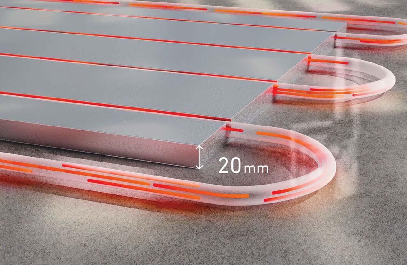 Z nizko nizko vgradno višino (le 20 mm)) in možnostjo polaganja zaključne talne obloge – ploščic,