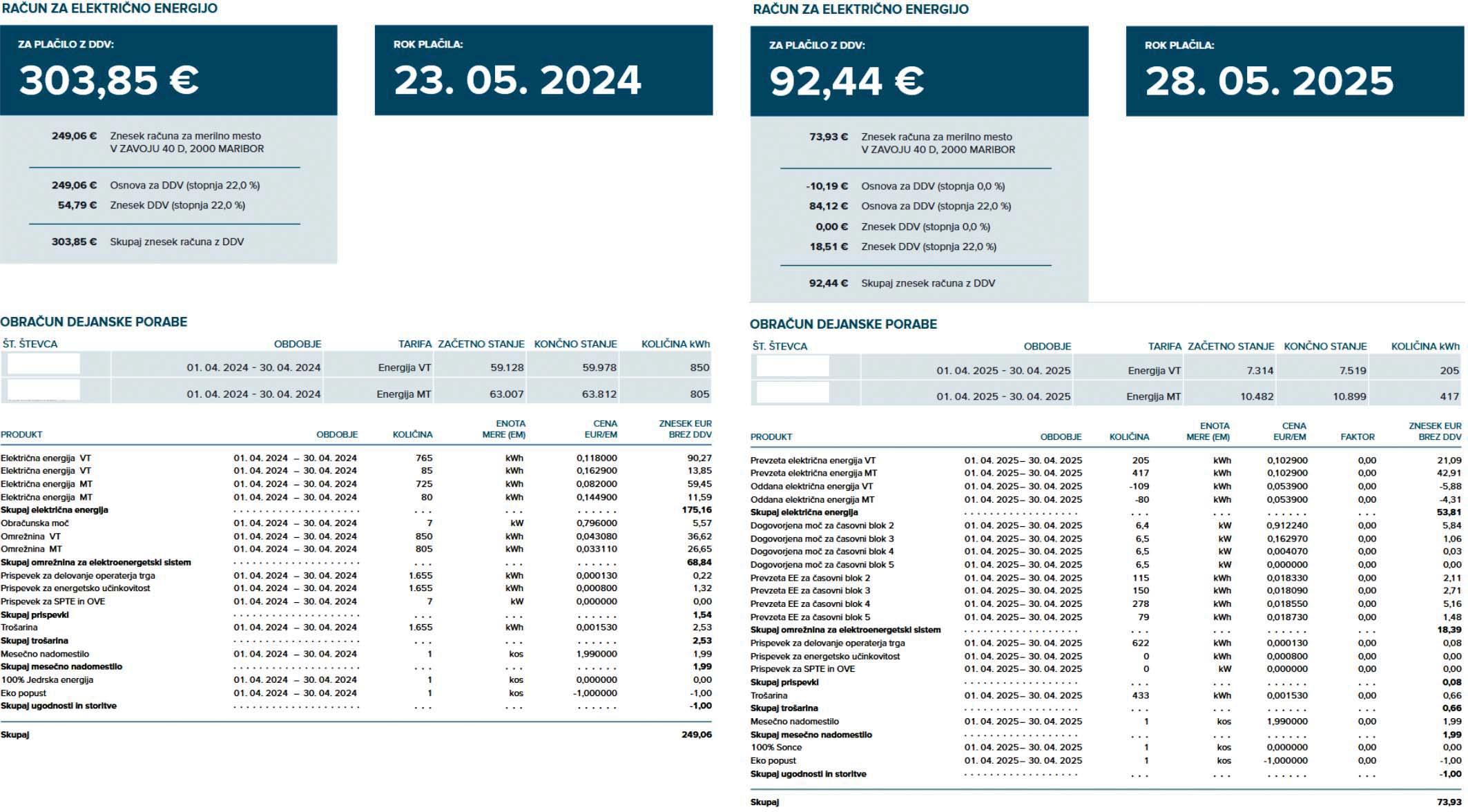 Rezultat? Računi so bili od 15 do 60 % nižji, odvisno od obdobja. V kritičnem obdobju (november 2024–februar 2025) je vlada znova uvedla popolno regulacijo in oprostitev prispevka OVE+SPTE. Januarja in februarja 2025 so položnice za običajnega gospodinjskega odjemalca znašale le 54,4 EUR.