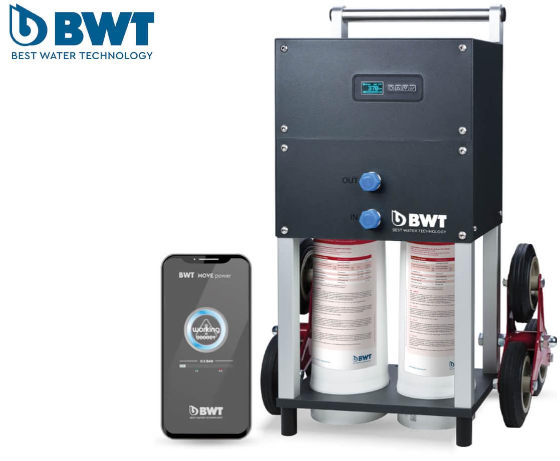 Mobilna naprava ima kompakten dizajn, je lahka, za lažje manevriranje po stopnicah pa ima tudi transportna koleščka. Naprava je opremljena z integriranim zaslonom in štirimi funkcijskimi gumbi. Zaslon daje uporabniku hiter pregled vseh parametrov izdelka. Funkcionalnost naprave je še dodatno izboljšana z aplikacijo BWT RO, ki jo lahko prenesete v mobilno napravo. Aplikacija ponuja pameten nadzor nad delovanjem naprave.