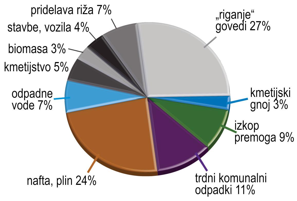 Metan je za ogljikovim dioksidom (CO2) drugi najpogostejši antropogeni toplogredni plin. Po 12 letih v ozračju sicer razpade, vendar je njegov potencial globalnega segrevanja kar
