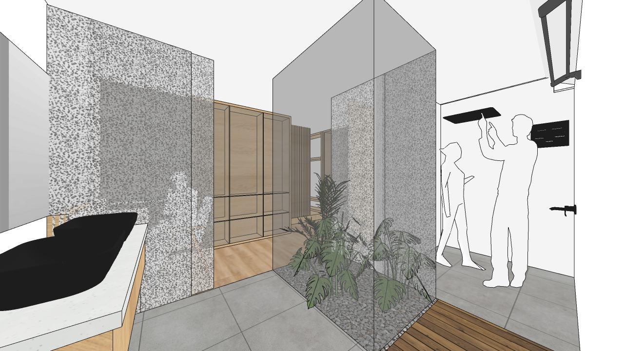 Kamar tamu menjadi challenge karena biasanya jika tidak ada tamu, maka kamar tamu akan kosong begitu saja. Kita tidak ingin itu terjadi, sehingga kita menyiasatinya dengan menggunakan Folding bed. Bila tidak ada tamu, ruangannya bisa menjadi perlebaran dari Gym yang dapat digunakan untuk senam ataupun yoga bersama, dan bila ada tamu maka bed bisa diturunkan dan ada sekat antar kamar nya.