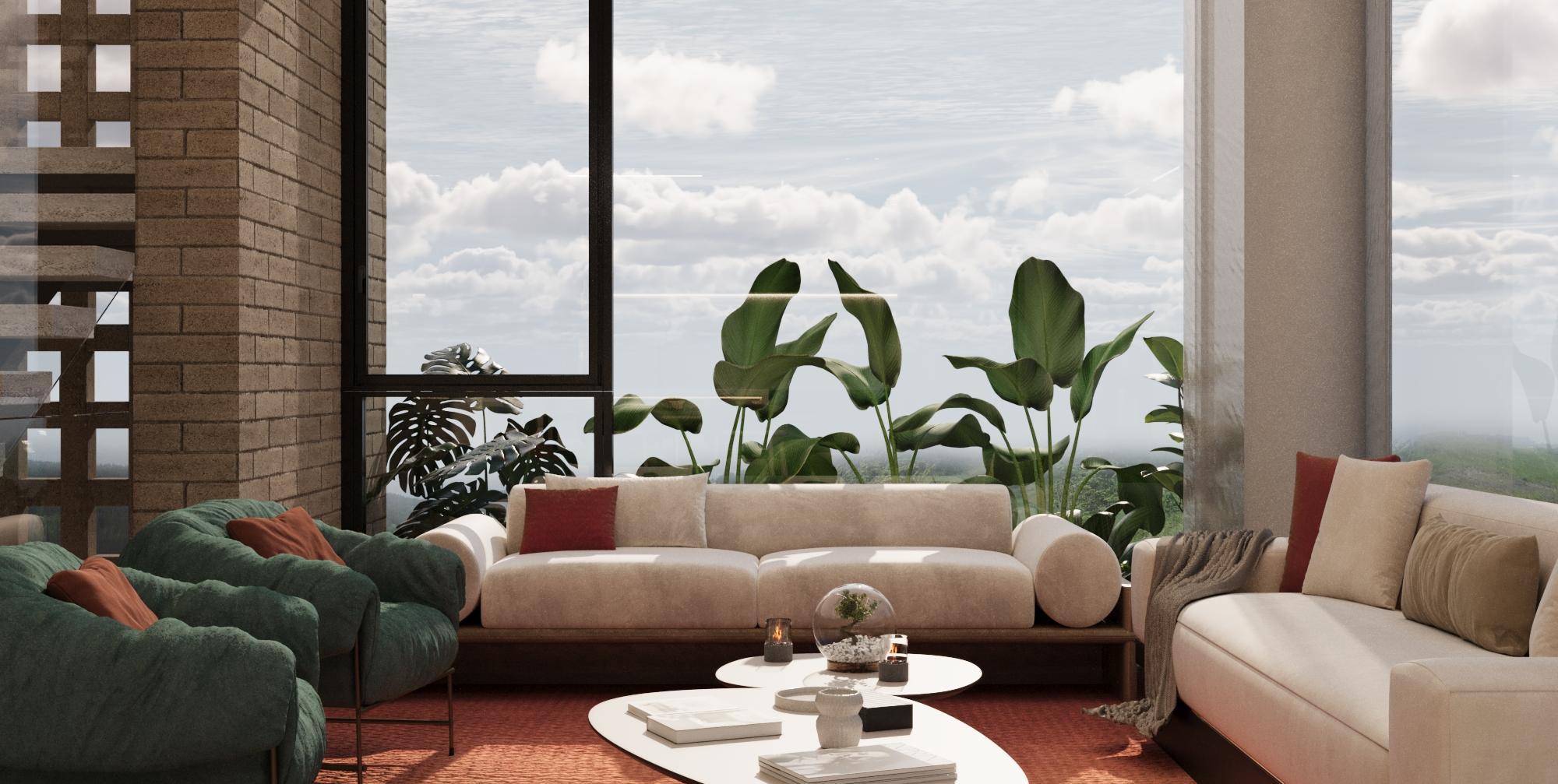 los Santos con una gama de materiales y colores pensada para brindar la mayor calidez y resalta la conexión con la naturaleza y su entorno, debido a que goza de unas vistas
