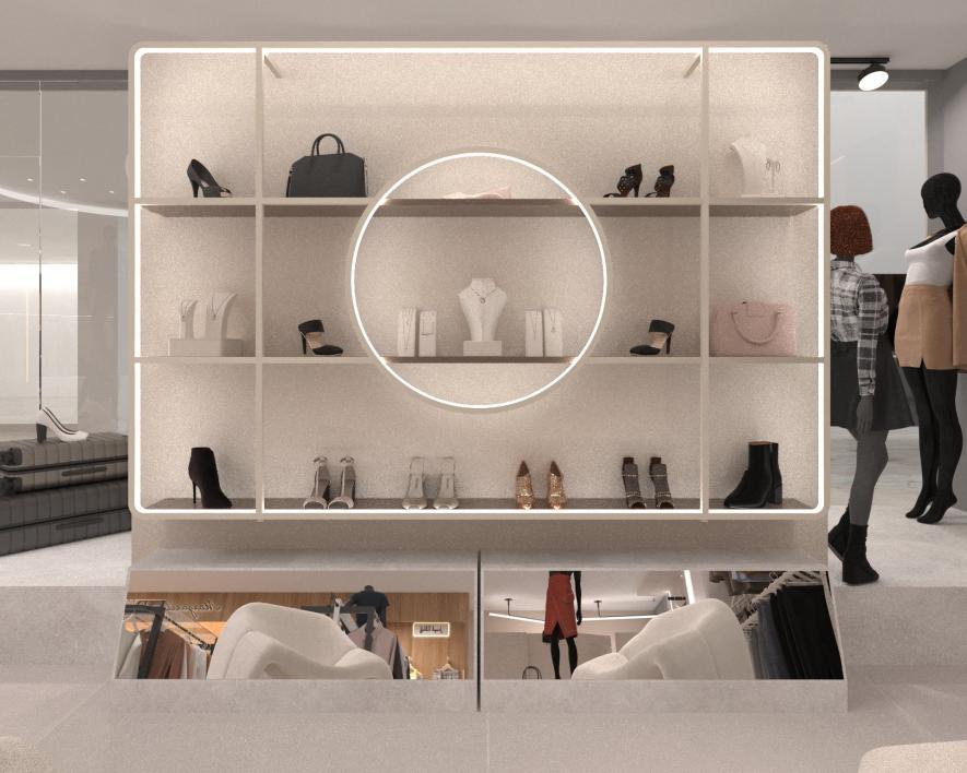 Se planteó un diseño orgánico, curvo y sofisticado, que resaltara diferentes puntos importantes dentro de la tienda, y atendiera a los diferentes requerimientos funcionales y logísticos de la mejor manera posible, fuera para redirigir la experiencia del usuario, brindar mayor estatus a cierta zona, aumentar el comfort espacial o llamar la atención sobre cierto producto en específico
