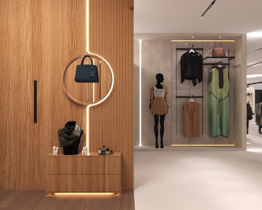 Se planteó un salón especial de exhibición para la marca de ropa propia de los dueños, que llamara la atención por la calidad dramática de la escena generada, gracias a su ubicación, su geometría y su iluminación