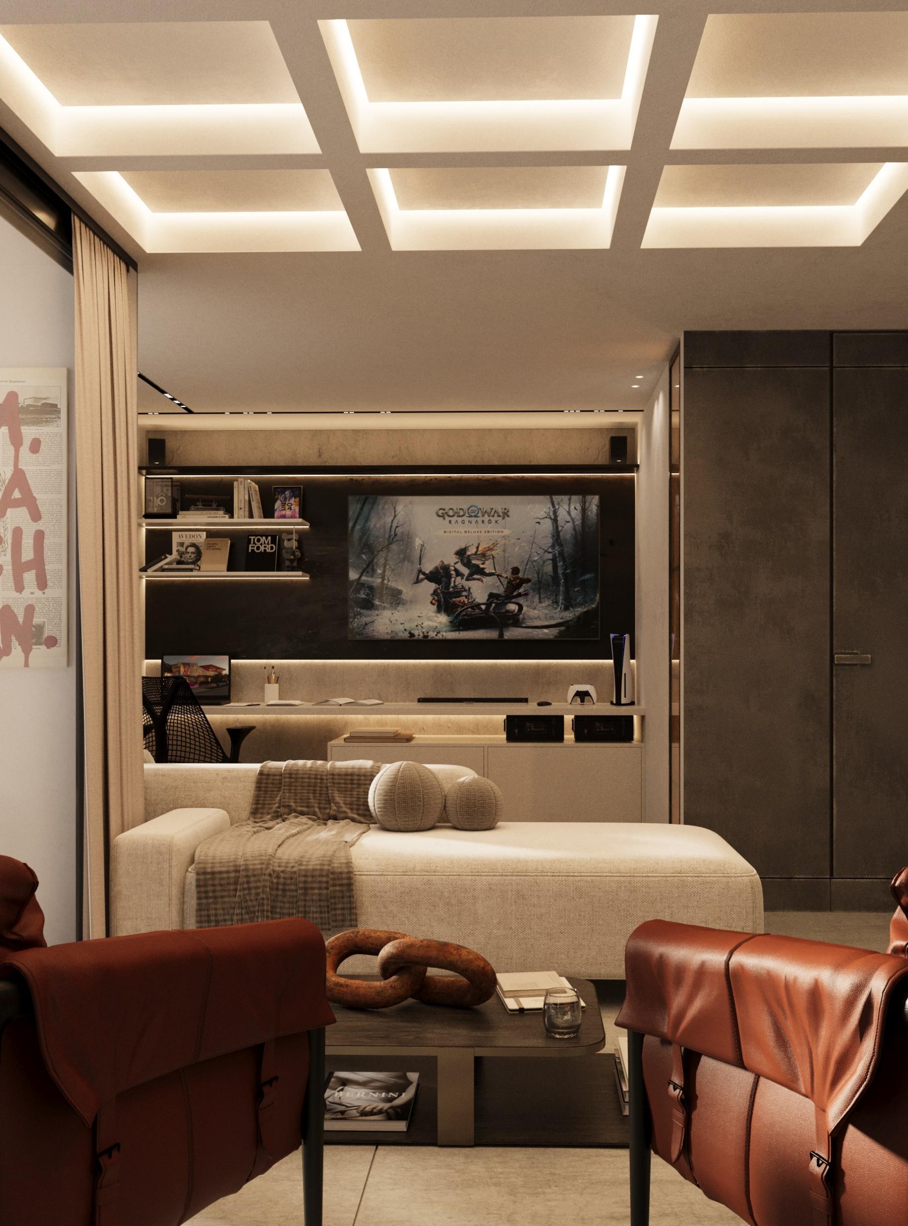 Este diseño fuertemente influenciado por un estilo industrial sofisticado, fue una interpretación muy asertiva de los gustos y las referencias que los clientes desde un principio manifestaron Se aprovechó la libertad creativa del proyecto para jugar con el uso de diferentes materiales, el diseño y la geometría del mobiliario, el cielo raso y los sistemas de iluminación, para lograr una estética innovadora y con una dinámica visual muy interesante para el usuario