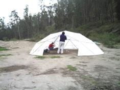 LA TECNOLOGÍA DESARROLLADA PARA EL PROYECTO ES DE FÁCIL Y RÁPIDO ENSAMBLE , CONFORMADA POR MÓDULOS, QUE INICIAN CON LA COLOCACIÓN DE PUNTALES DE MADERA (DESECHOS DE CONSTRUCCION)