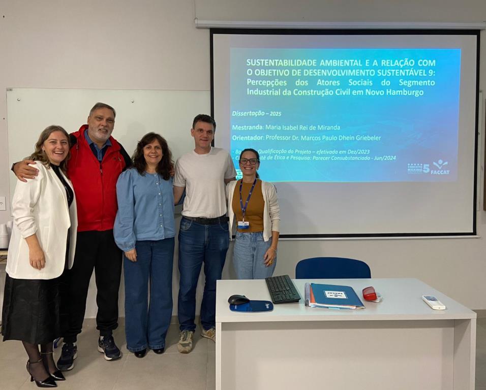 A defesa da dissertação de Maria Isabel Rei de Miranda foi realizada no dia 15 de maio. O trabalho, intitulado “Sustentabilidade Ambiental e a Relação com o Objetivo de Desenvolvimento Sustentável 9: Percepções dos Atores Sociais do Segmento Industrial da Construção Civil em Novo Hamburgo”, contou com a avaliação da Comissão Examinadora composta pelo Prof. Dr. Marcos Paulo Dhein Griebeler (orientador), pela Profa. Dra. Dilani Silveira Bassan (FACCAT), pelo Prof. Dr. Roberto Tadeu Ramos Morais (FACCAT) e pela Profa. Dra. Aleteia Hummes Thaines (UNESC).