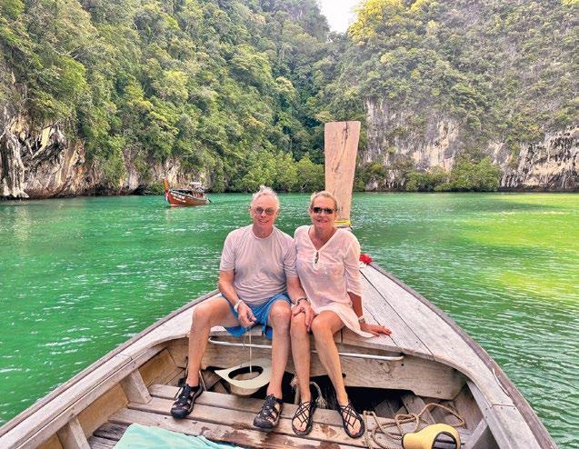 David and Lisa Reath near Six Senses Ya Noi, Thailand, and King penguins in South Georgia, a stop on their transcontinental Silver Cloud cruise. Find more trip photos and the full interview at AndrewHarper.com.