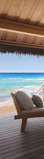 the far east side of the resort, where the pool is adults-only. This more tranquil area is situated beside the Residents’ Beach House restaurant, which is especially romantic in the evenings, when tea lights and candles illuminate its seaside patio. The hotel’s main dining venue, ‘Ulu Ocean Grill, specializes in top-notch sushi, and its breakfast buffet offers everything from dim sum, mezzes and miso soup to coconut pancakes and classic scrambled eggs.