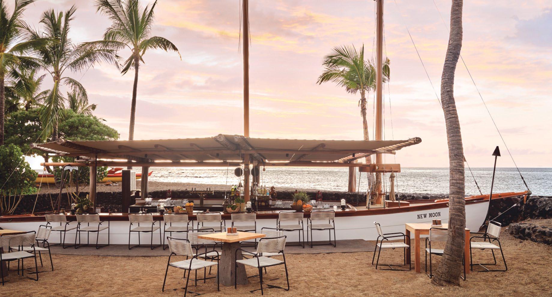 Opened to much fanfare in July 2023, this beachfront hotel had big shoes to fill. The original Kona Village Resort, built in the 1960s on the grounds of a former fishing village, was beloved for its homey atmosphere, where repeat guests like Steve Jobs could unwind without the distractions of Wi-Fi and television. Destroyed in 2011 by a tsunami, the