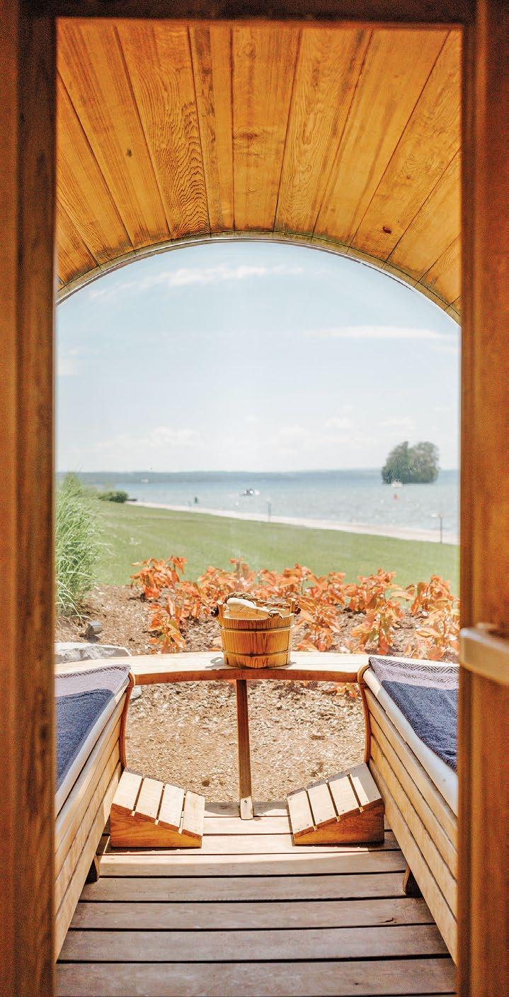 a tranquil sauna garden, a heated lakefront pool, a year-round hot tub, private daybeds, exhilarating summer boating activities and thrilling winter skiing. The nearby charming downtown of Canandaigua features a historic Main Street’s bustling shopping district. Additionally, the surrounding region offers inviting local wineries and breweries. Bristol Mountain ski resort boasts over 1,200 vertical feet of drops in winter. Book your idyllic, unforgettable upstate New York getaway today.