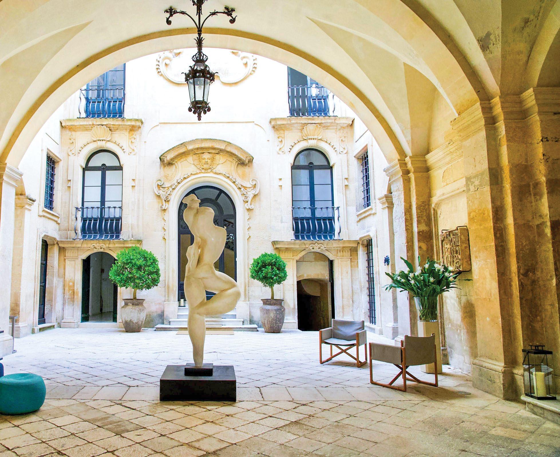 STAY From Rome, you can fly directly to the small airport in Brindisi, about halfway down the “heel” of Italy. From there, it’s a short drive to the baroque city of Lecce, Puglia’s crown jewel. Less than an hour from the airport, La Fiermontina Palazzo Bozzi Corso stands behind an unmarked door on a narrow street in the heart of the city. Check into one of the hotel’s Deluxe Suites, named for the owners’ illustrious friends and family.
