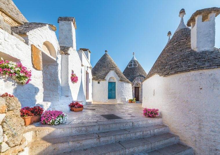 A holiday in Puglia is a refreshingly low-key affair, where highlights of a trip may include visiting sleepy hilltop villages, lounging by the sea at a stylish beach club or enjoying an olive oil tasting at a local masseria (traditional fortified farmhouse). This itinerary will take travelers from art-filled Lecce, famed for its baroque architecture, to Bari, Puglia’s gritty but fascinating industrial port city. With Lecce as your base, you’ll take day trips to the southernmost point in Puglia, then move north to relax on Adriatic beaches, stay overnight in charming Ostuni and explore the ancient village of Alberobello, recognized by UNESCO for its mortarless houses, called trulli.