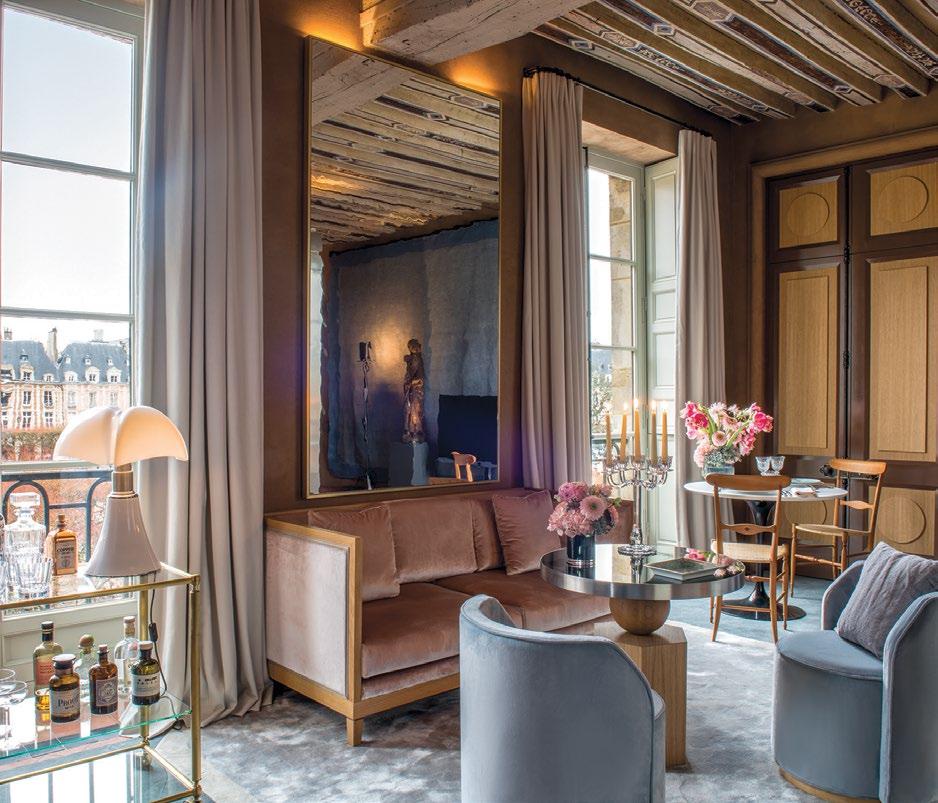 Cour des Vosges’ illustrious French royal past reverberates through its walls, reinventing history in a modern way. In the regal surroundings of the famous Place des Vosges, this Evok Collection hotel makes time stand still by imbuing the national heritage site of the former Hôtel de Montbrun with poetic and artistic touches. Overlooking Louis XIII gardens and famous pink-brick houses with slate roofs, the 12 opulent rooms and suites of this 17th-century residence offer private spaces on four
