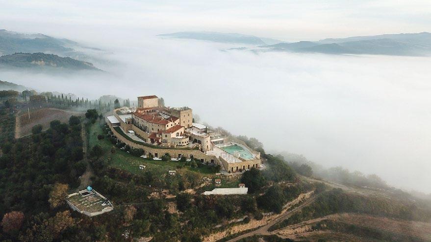 Castello di Velona, a restored 11th-century castle, overlooks the Val d’Orcia, a UNESCO World Heritage site. It’s located an hour and 45 minutes from Florence and 8 kilometers from Montalcino. The castle has 10 rooms and 35 suites in either Castle Rooms or Contemporary Rooms styles. The resort features three restaurants and the OLISPA, a relaxation area with a Jacuzzi, Turkish baths, a sauna, emotional showers, ice falls and four hot spring thermal-water pools, open 24 hours.